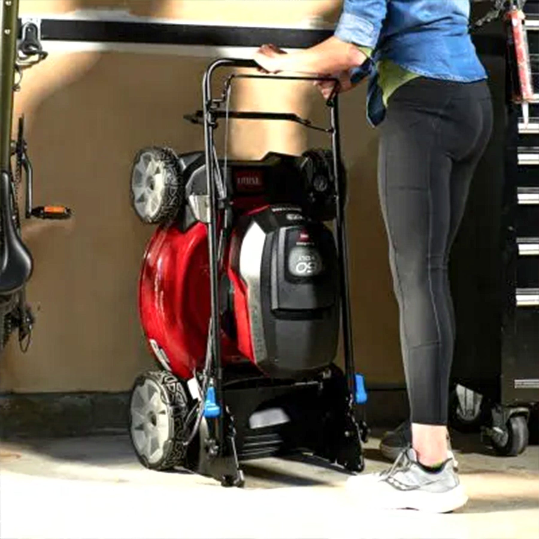 • SmartStow technology saves valuable garage or shed space, allowing you to effortlessly fold, lock, and store your mower practically anywhere