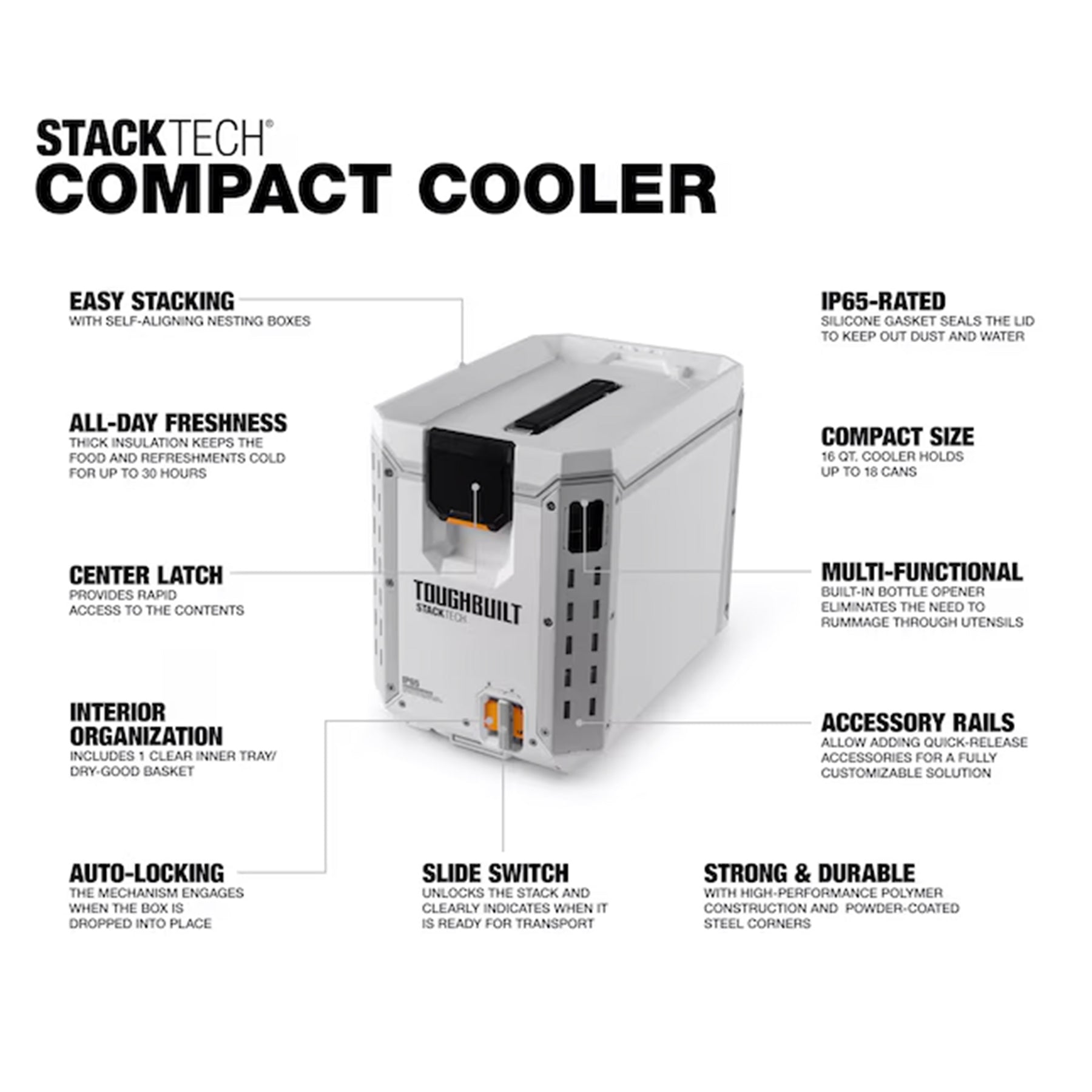 ToughBuilt Compact Cooler, Stackable 16 Qt Hard Shell Ice Chest (Open Box)