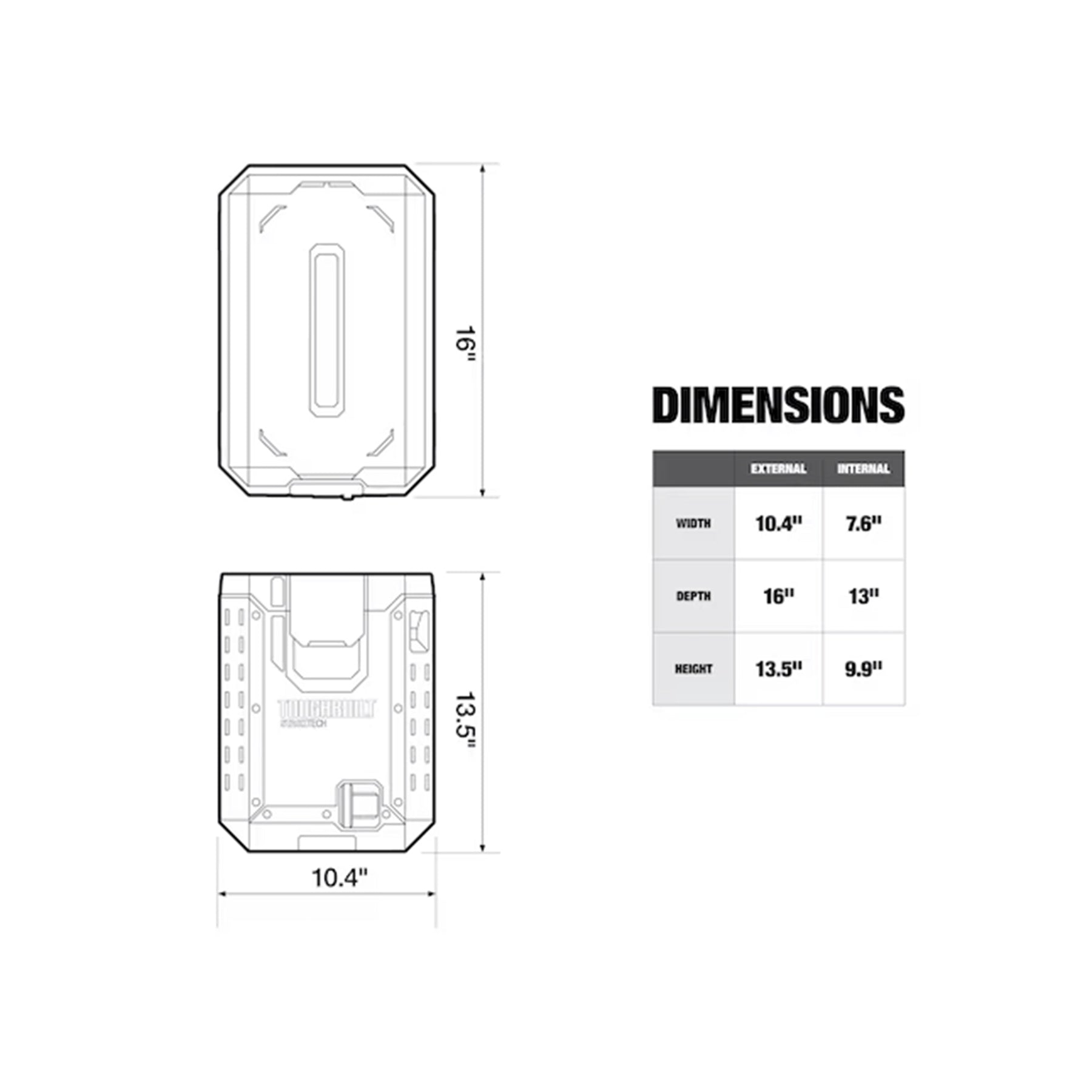• Dimensions (L x W x H): 16 x 10.4 x 13.5 inches