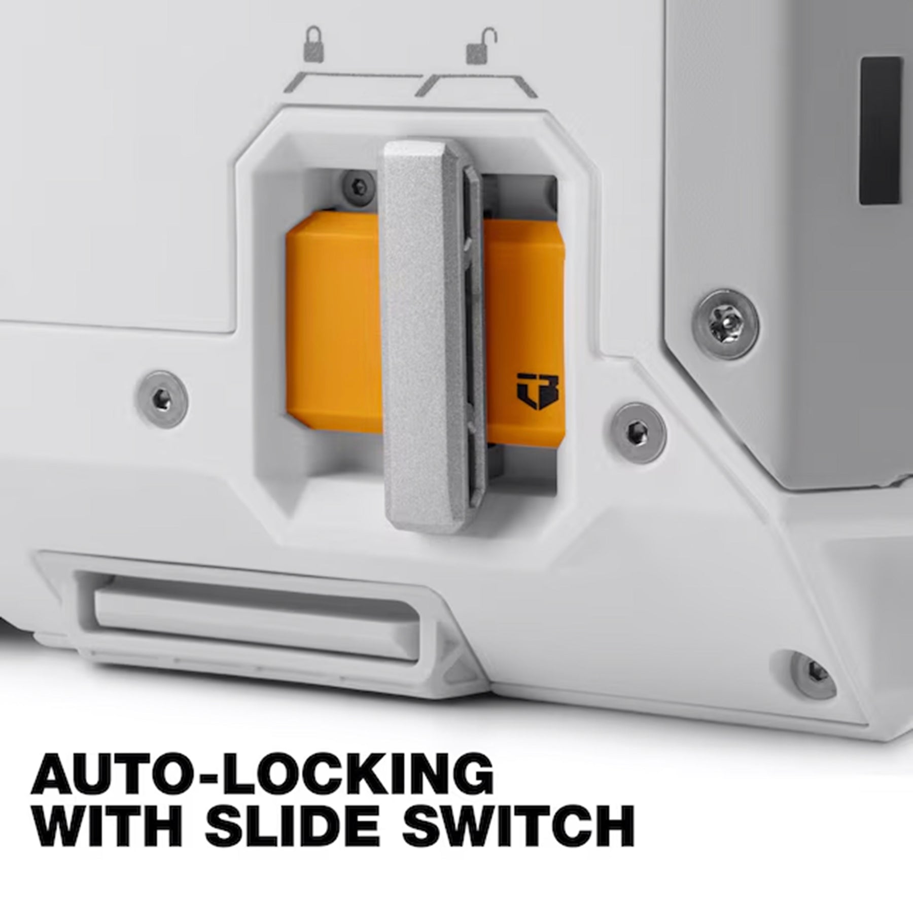 • Auto-locking mechanism engages when the box is dropped into place