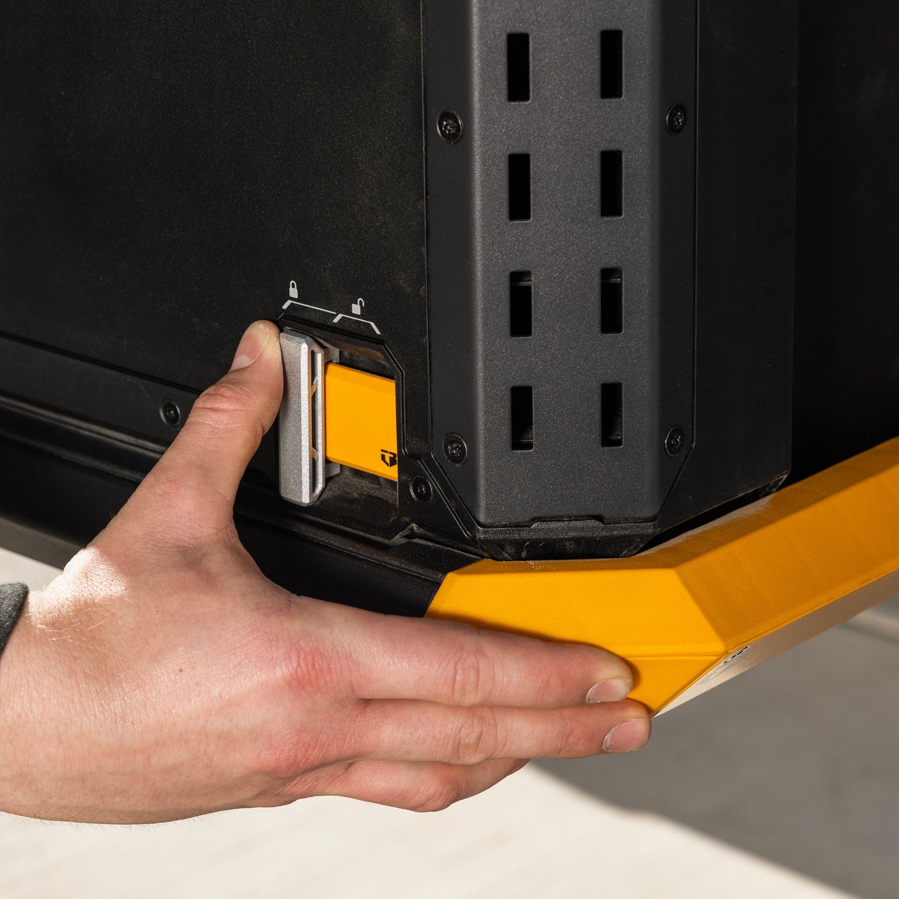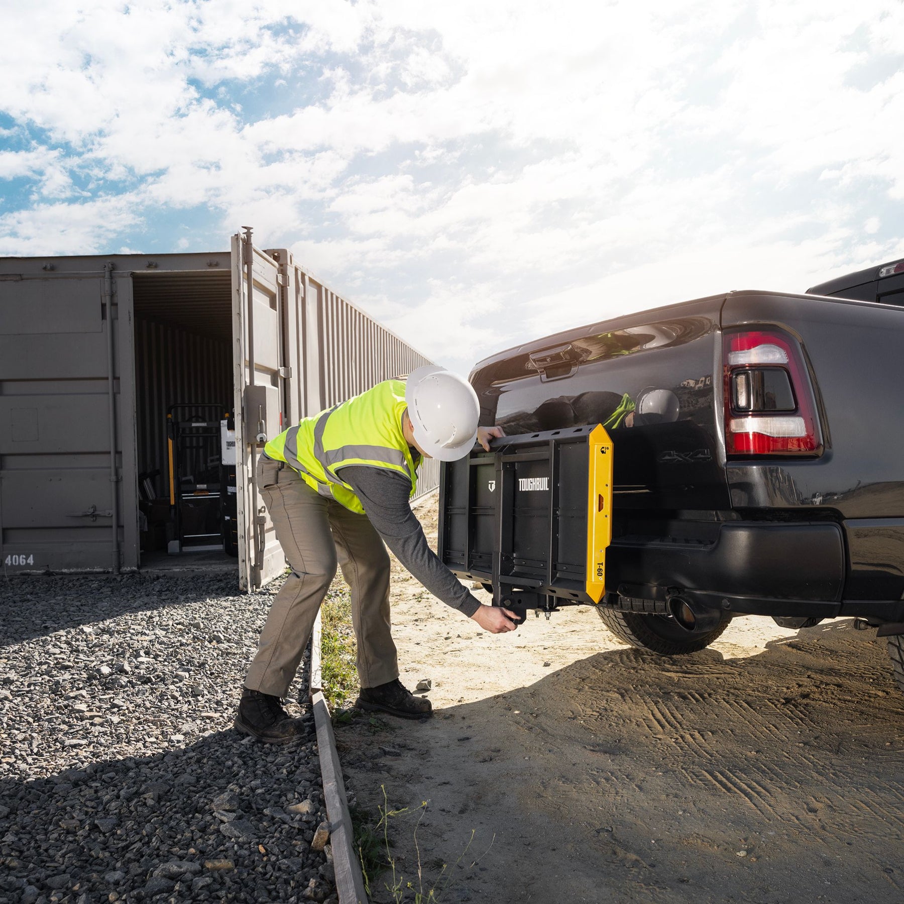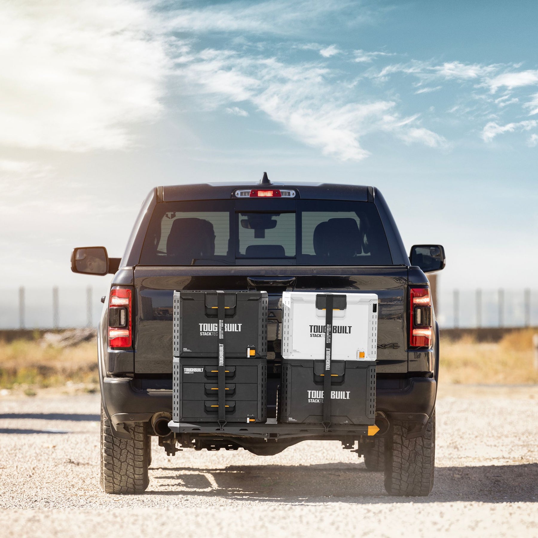 • Durable hitch-mounted cargo carrier frees up truck bed space by transporting StackTech tool boxes behind the vehicle