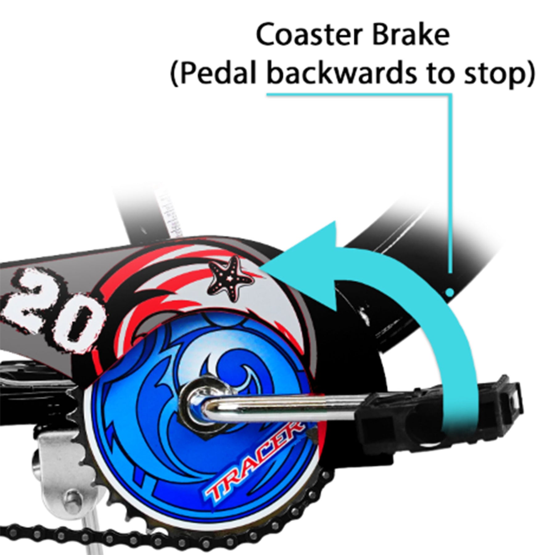 • Aluminum rear coaster brake allows you to stop by simply pedaling backward