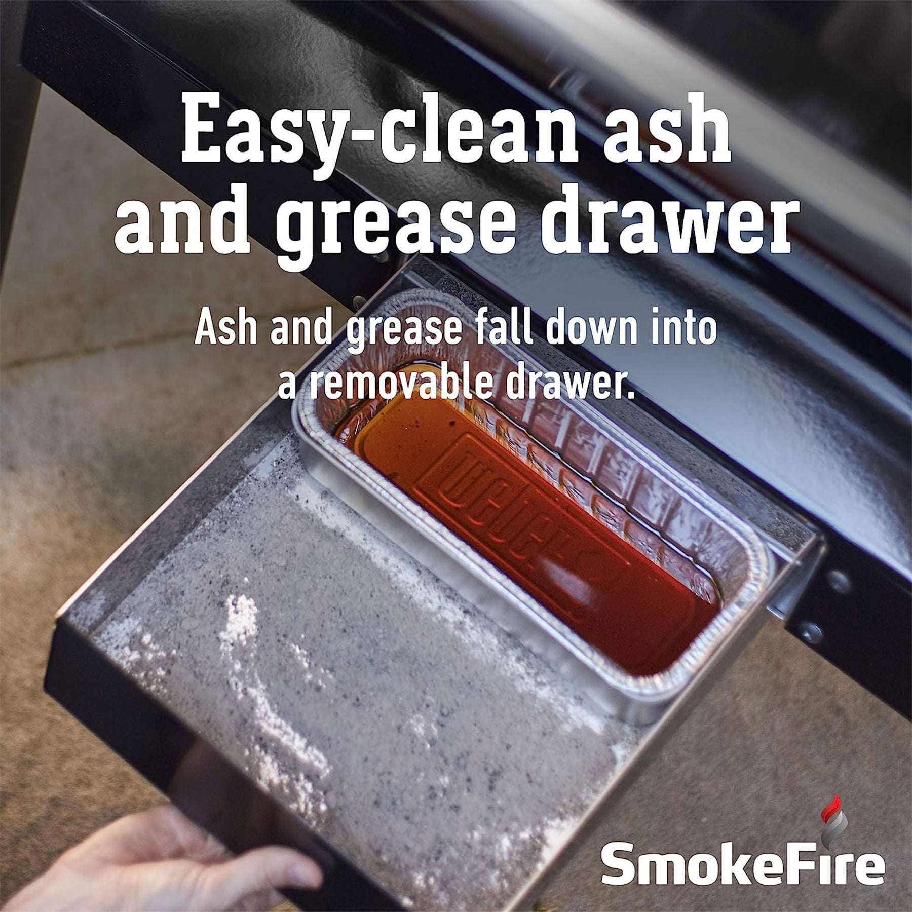• Ash and grease directly disposes into an accessible removable drawer for a simple cleaning process