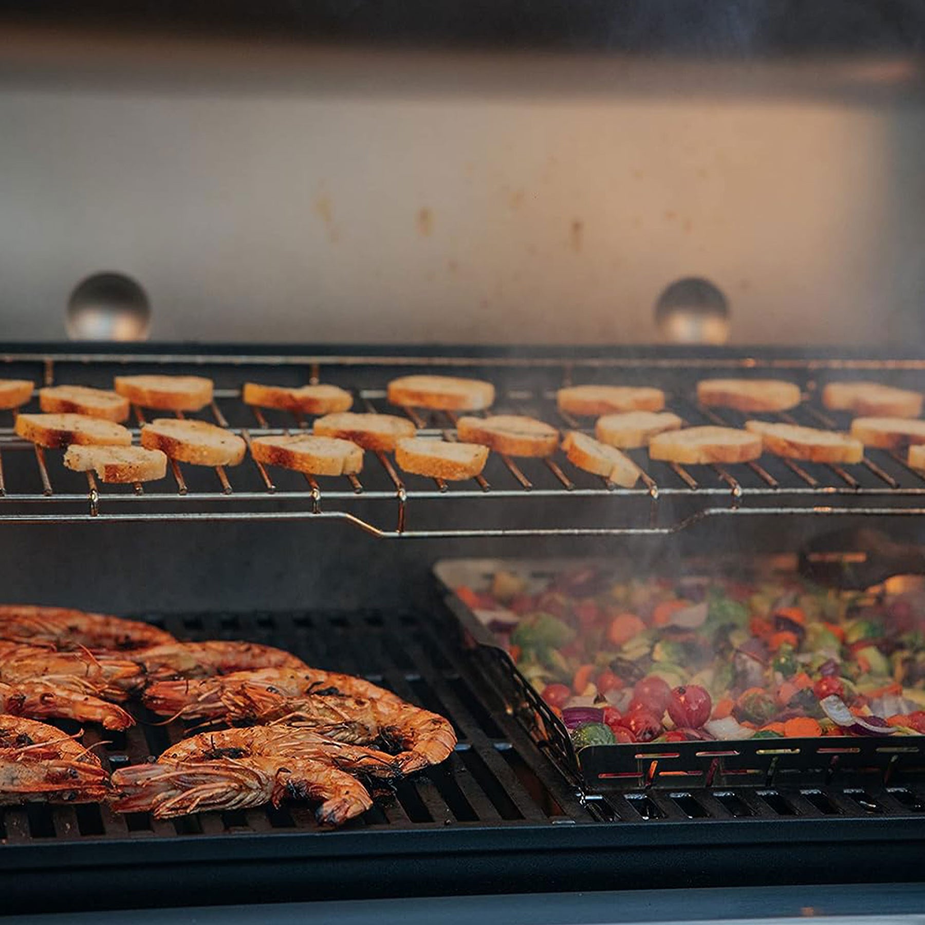 • Made to beautifully sear meats, char vegetables, and sides acquire irresistible smokiness all on the same grill