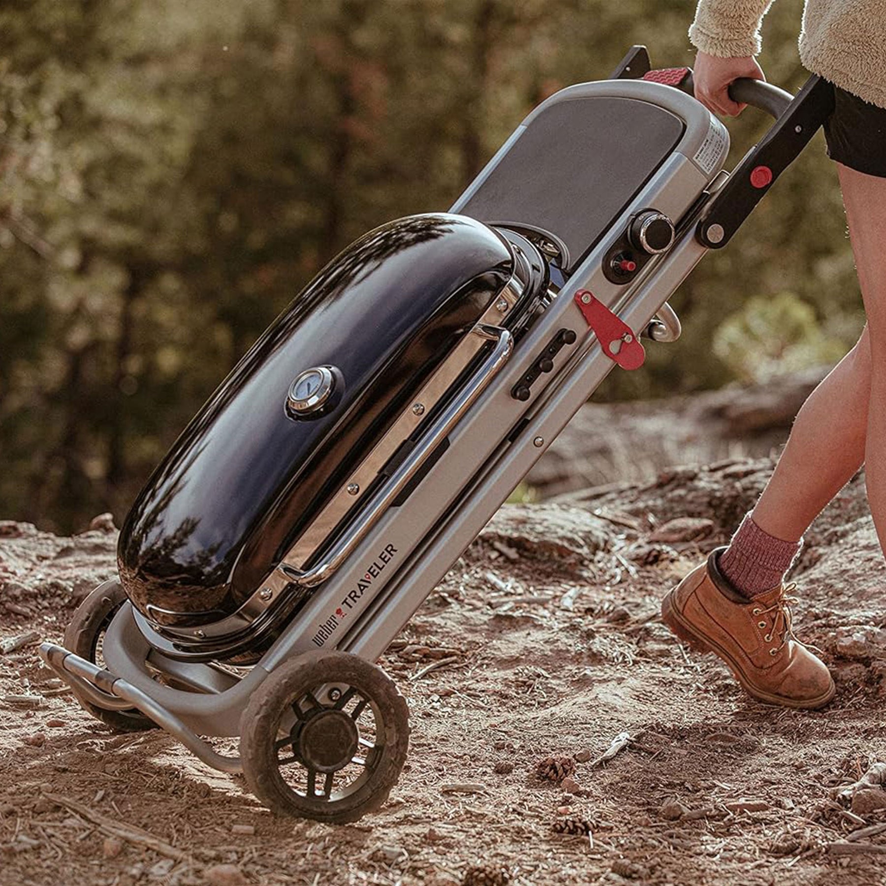 Weber Traveler Portable Porcelain Coated Cast Iron LP Gas Grill, Black (Used)