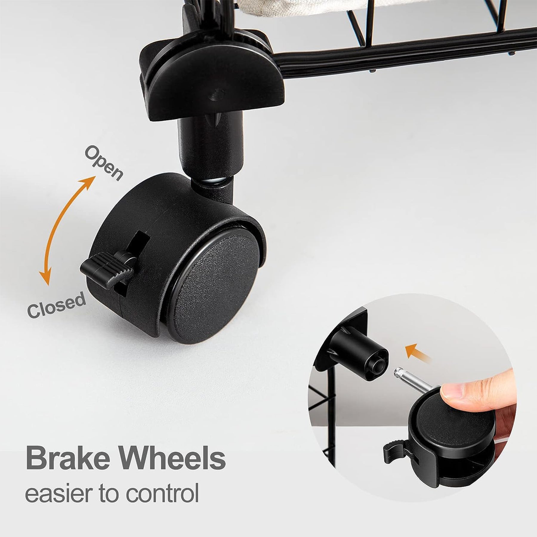 • Features smooth-rolling wheels that make transportation a breeze; Wheels lock to secure clothes basket placement