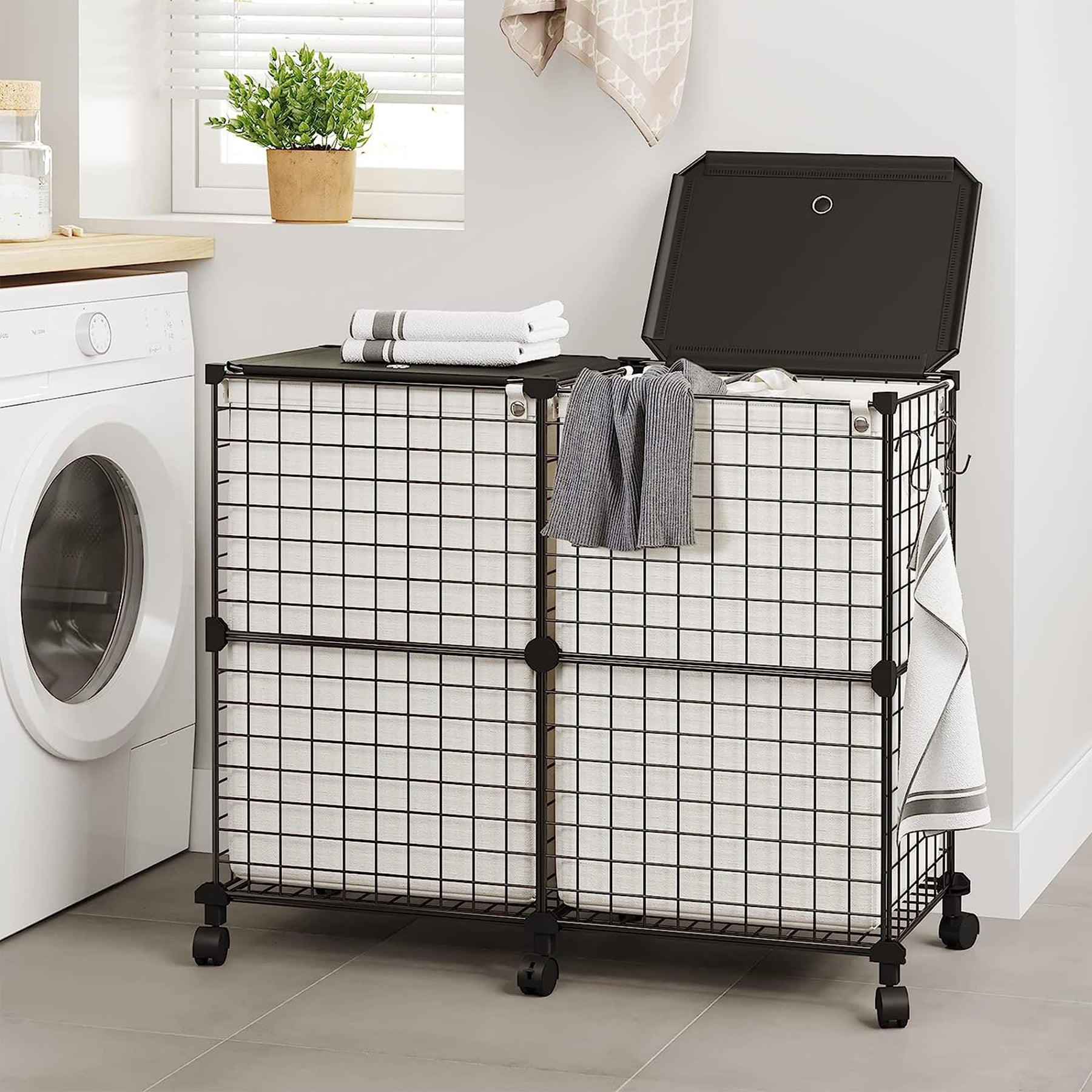 • Iron-frame laundry hamper on wheels makes laundry days effortless with a multifunctional design for storing and transporting small items