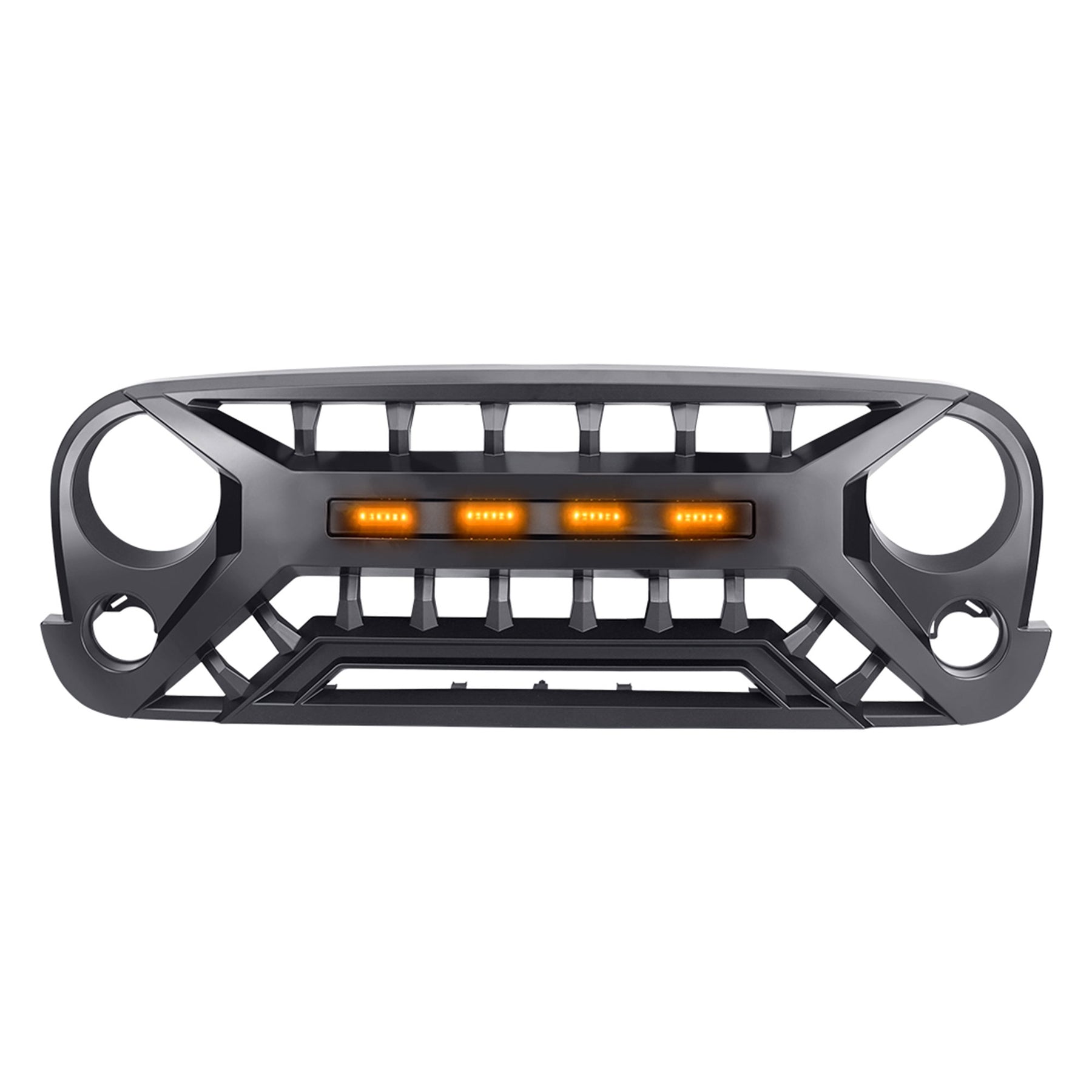 • Featuring a matte black finish, this grille not only enhances your Jeep's rugged look but also improves visibility with its integrated (4)amber lights