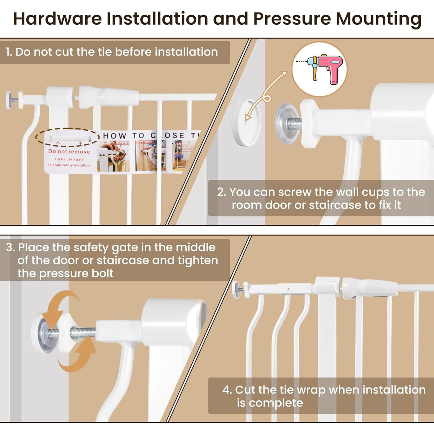 • Hold-open and auto-close design makes maneuvering the gate while carrying your tot a simple task