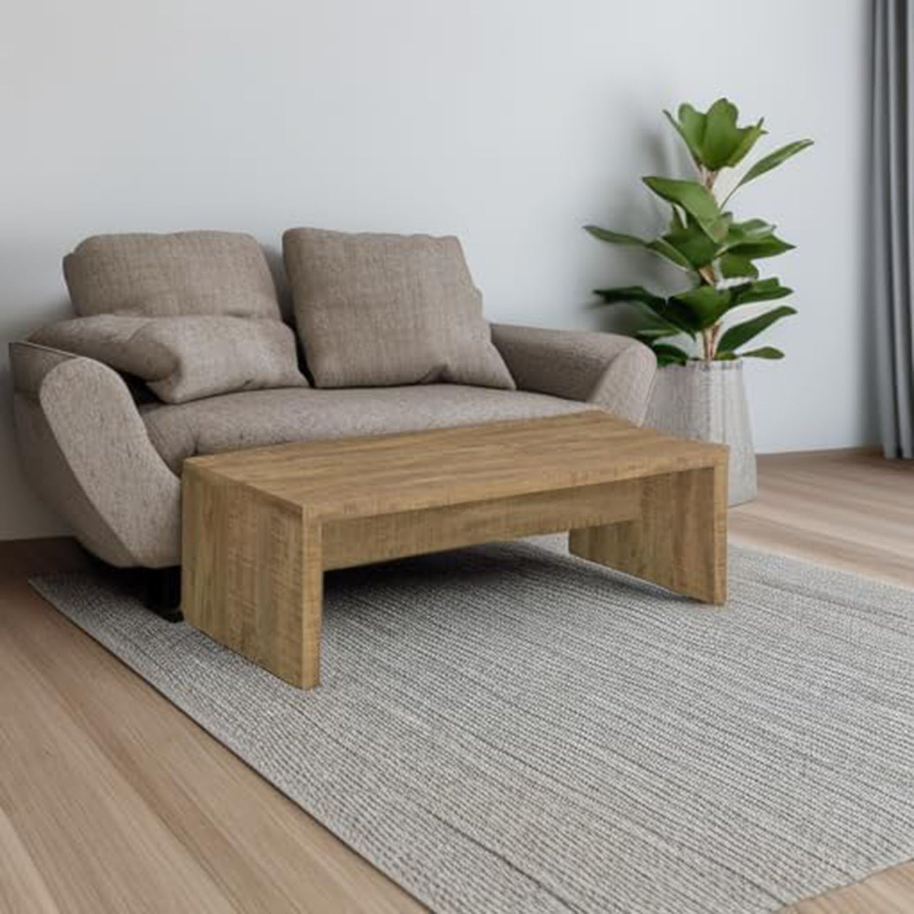 • Rectangular farmhouse coffee table offers warm rustic design and centerpiece function