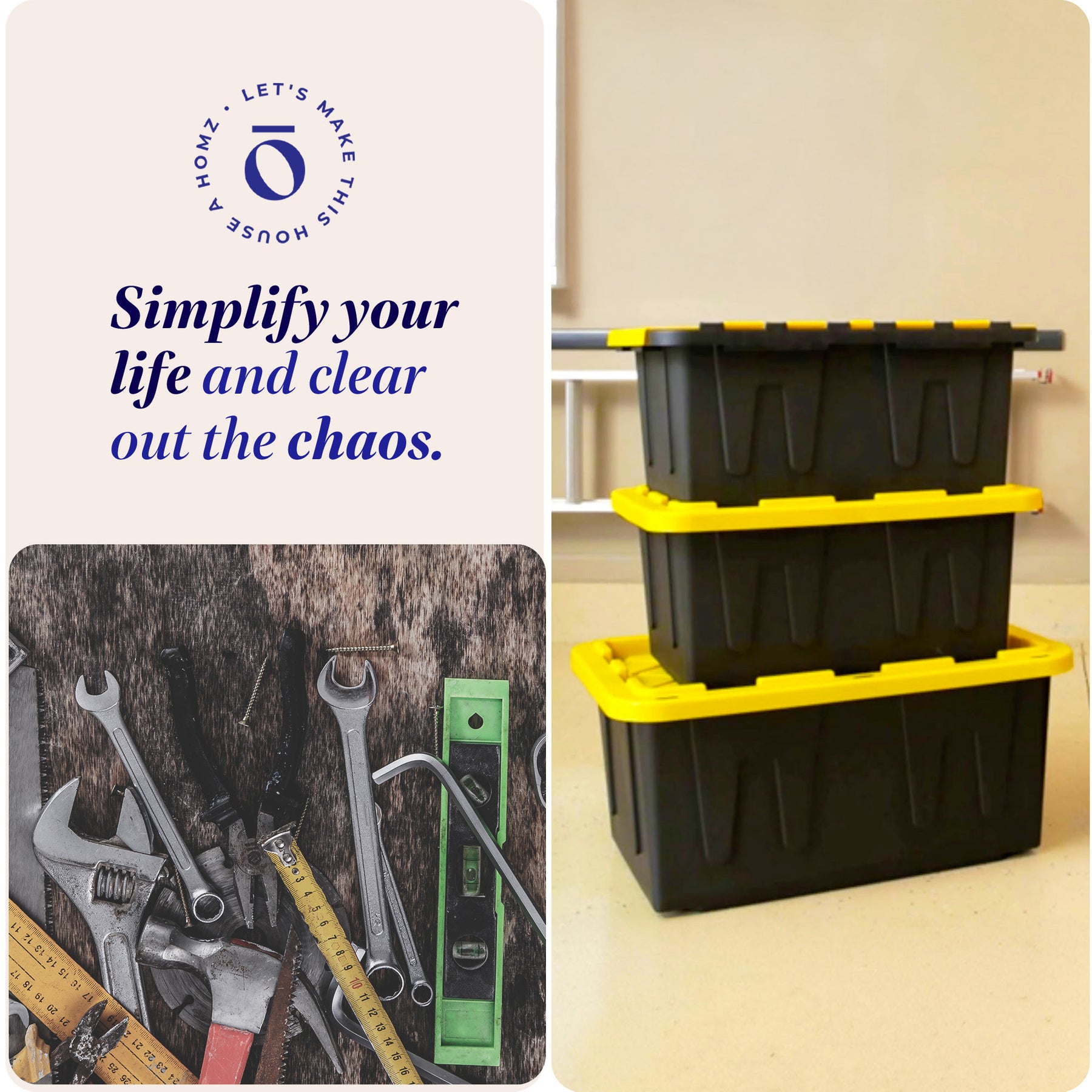 • Pack of 2 storage containers to store camping supplies, holiday decorations, tools, and more in this heavy-duty tote