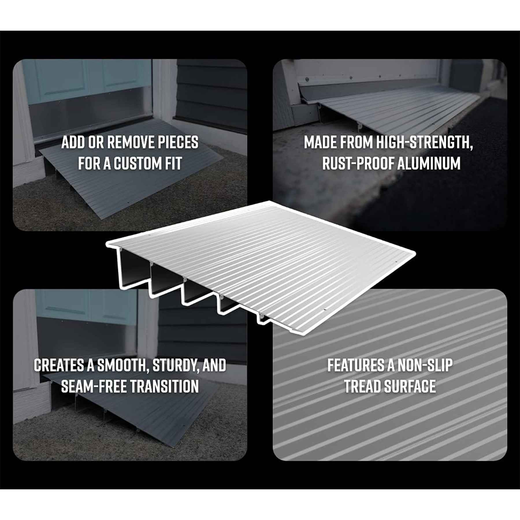 • Designed for doorways, sliding glass doors, and raised landings, this ramp ensures a smooth and sturdy path for wheelchair, scooter, walker, or cane users