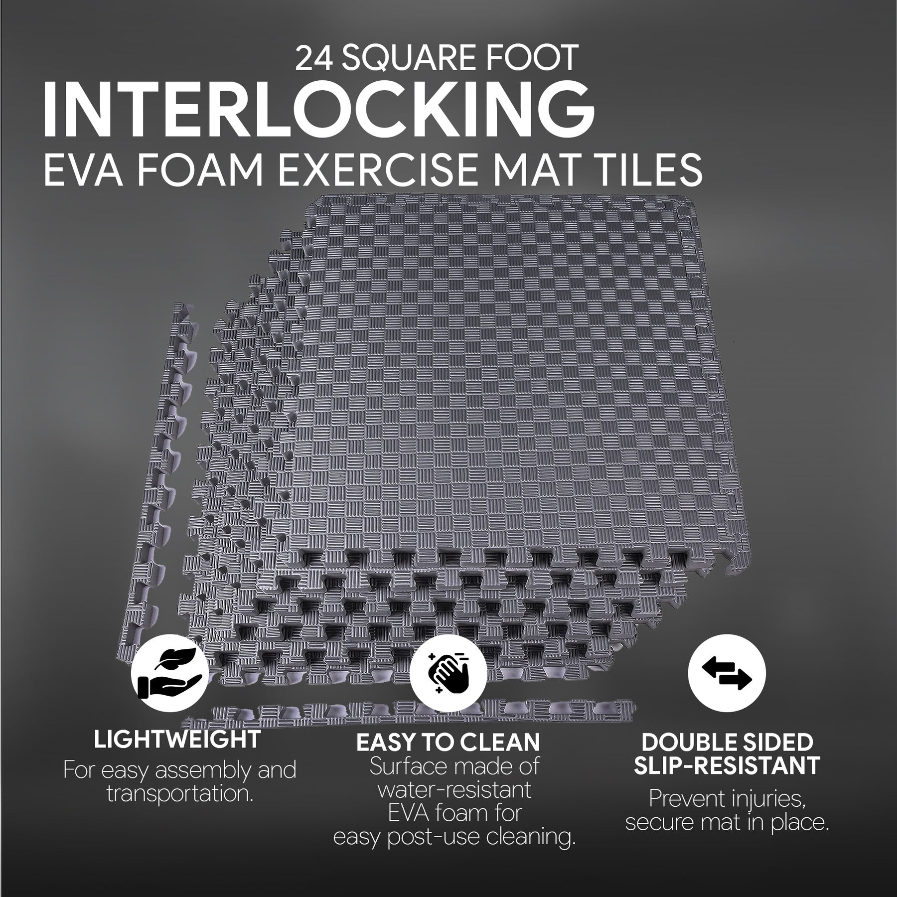 • Tile measurement (L x W x H): 24 x 24 x 1 inches per tile
