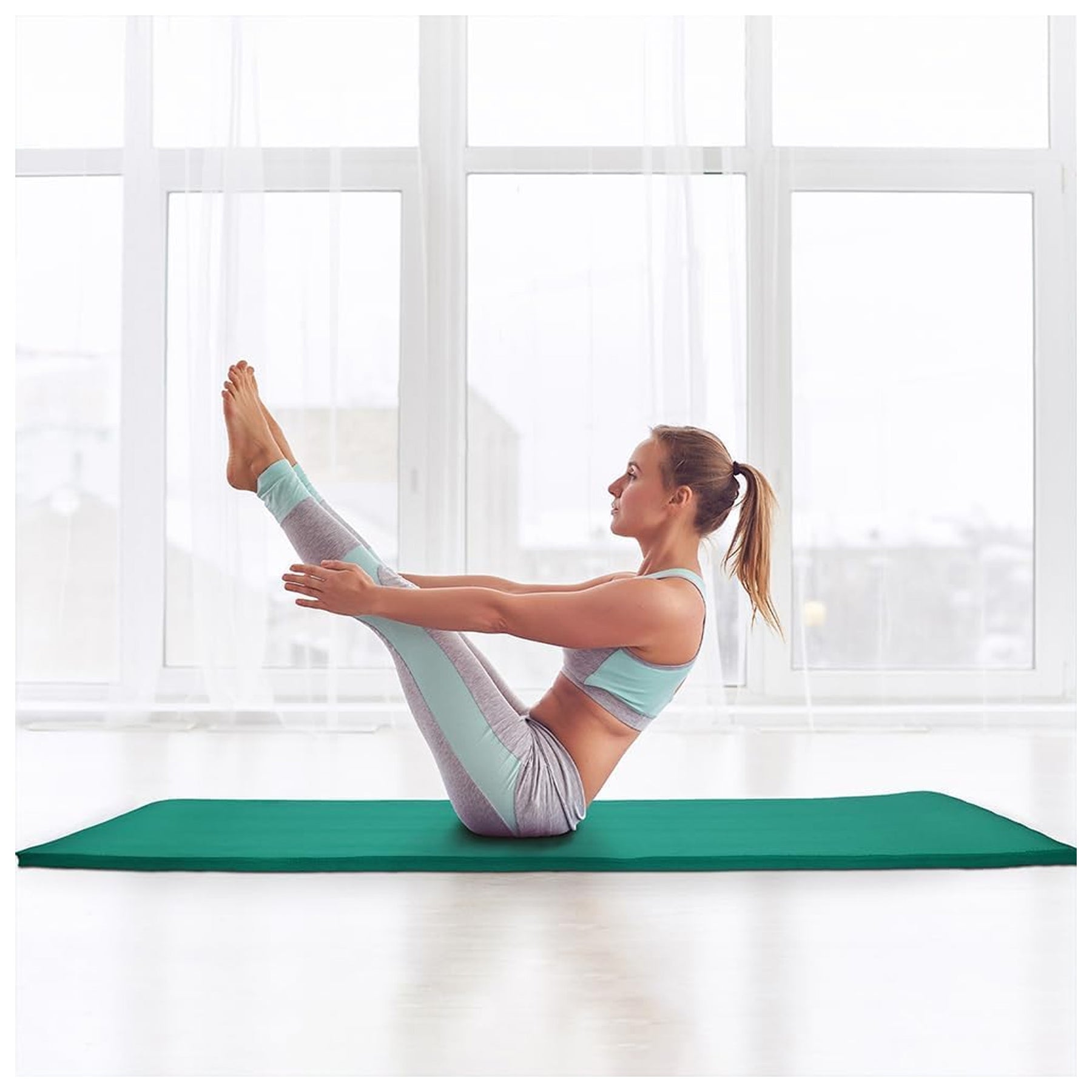 • Extra-large (71" x 24") and 1/2-inch thick high-density foam yoga mat provides cushioned support for spine, hips, knees, and elbows on hard floors