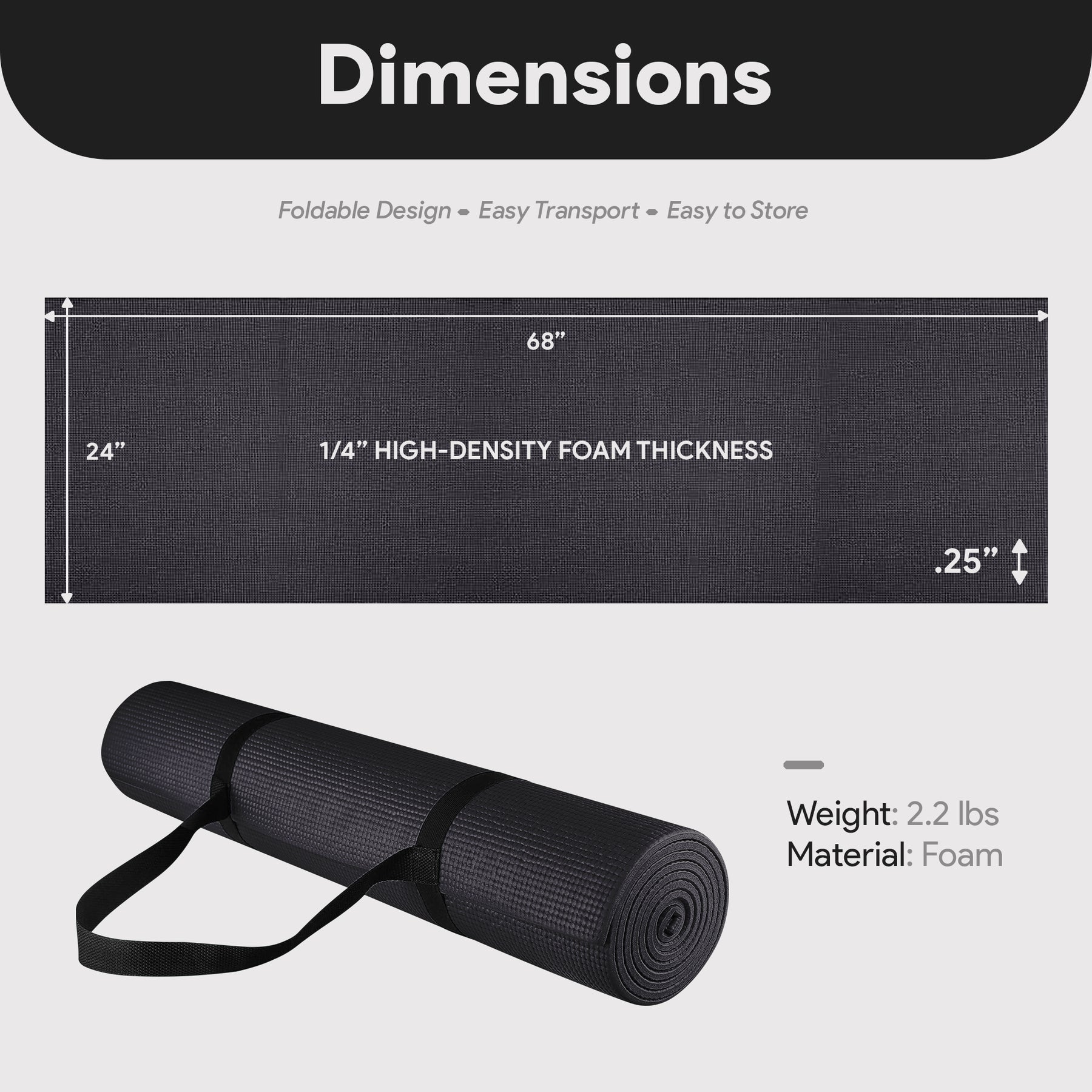 • Dimensions (L x W x H): 68.00 x 24.00 x 0.25 inches