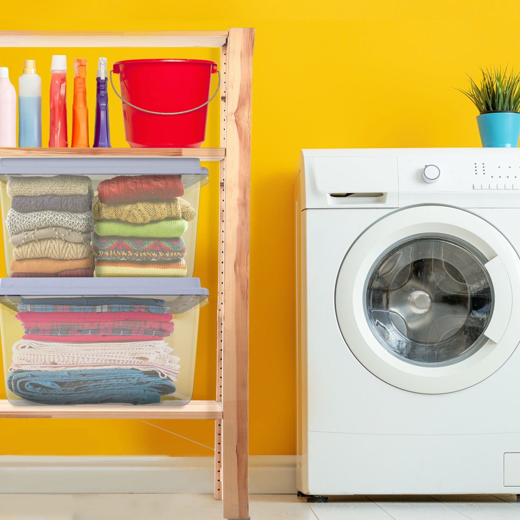 - Clear storage bins with lids provide an ample 72-quart capacity to keep your items neatly organized and your spaces clutter-free