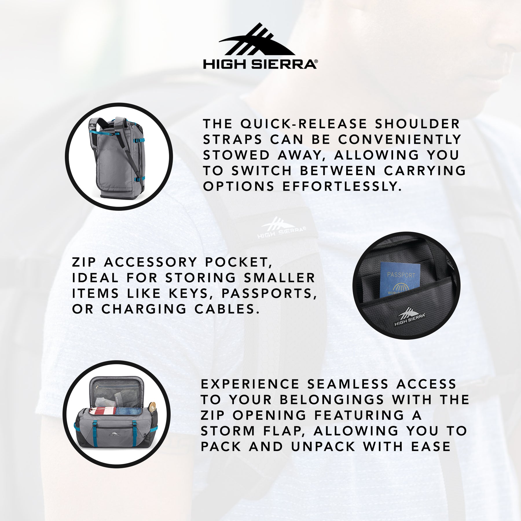 High Sierra Travel Overnight Duffel Backpack Gym Bag, Steel Gray/Blue (Open Box)