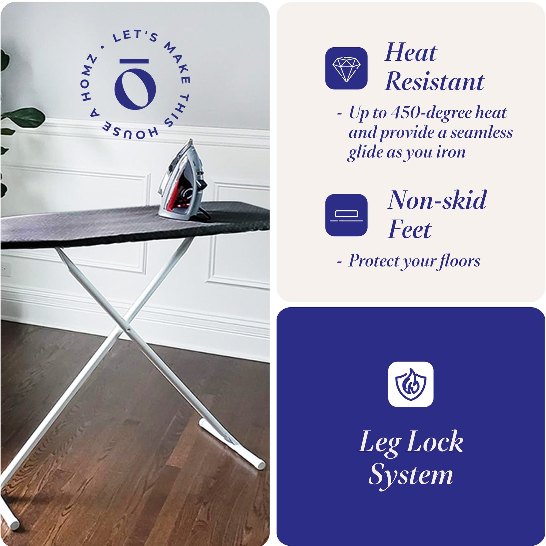 Homz Foldable Adjustable Ironing Board w/Foam Pad & Cotton Cover,Gray (Open Box)