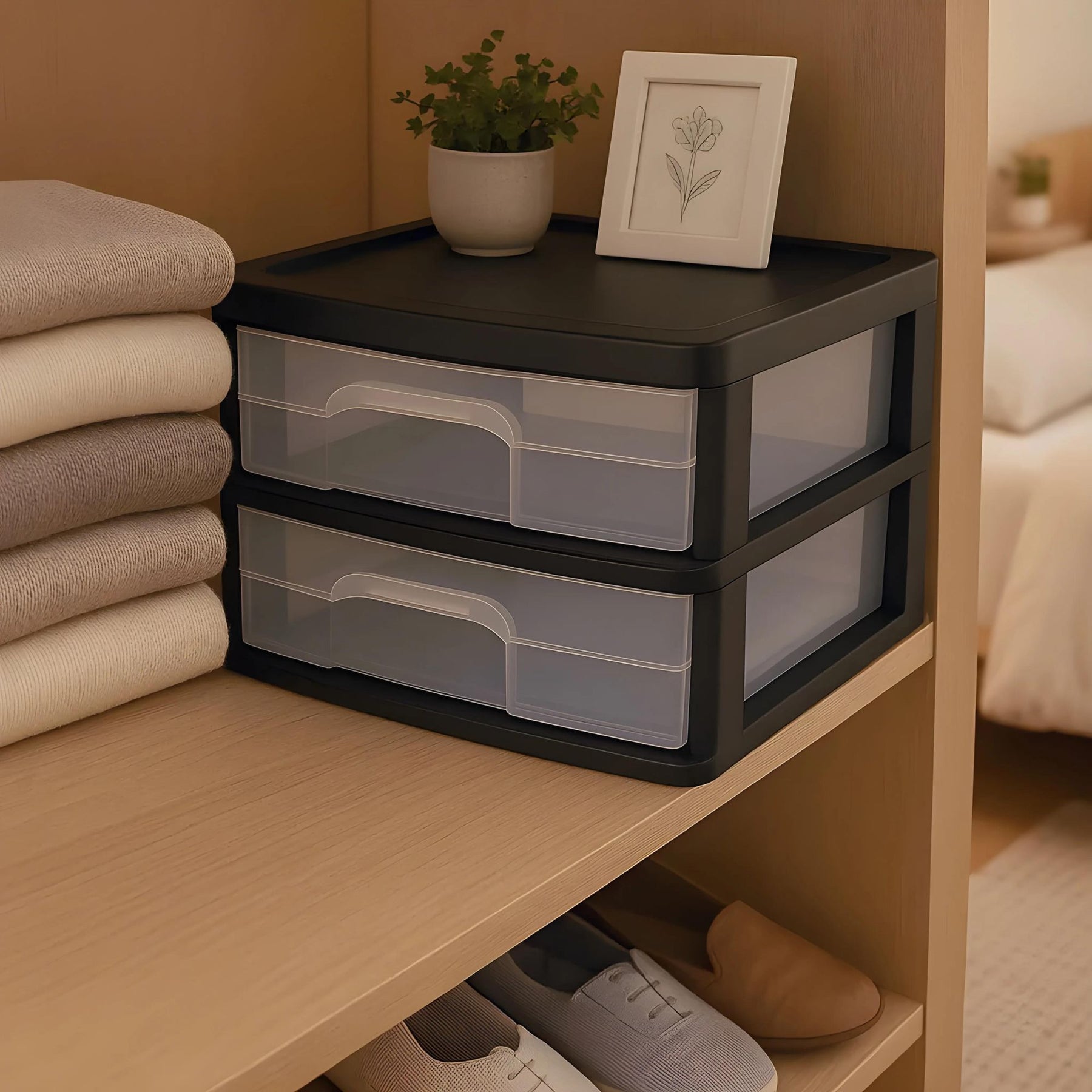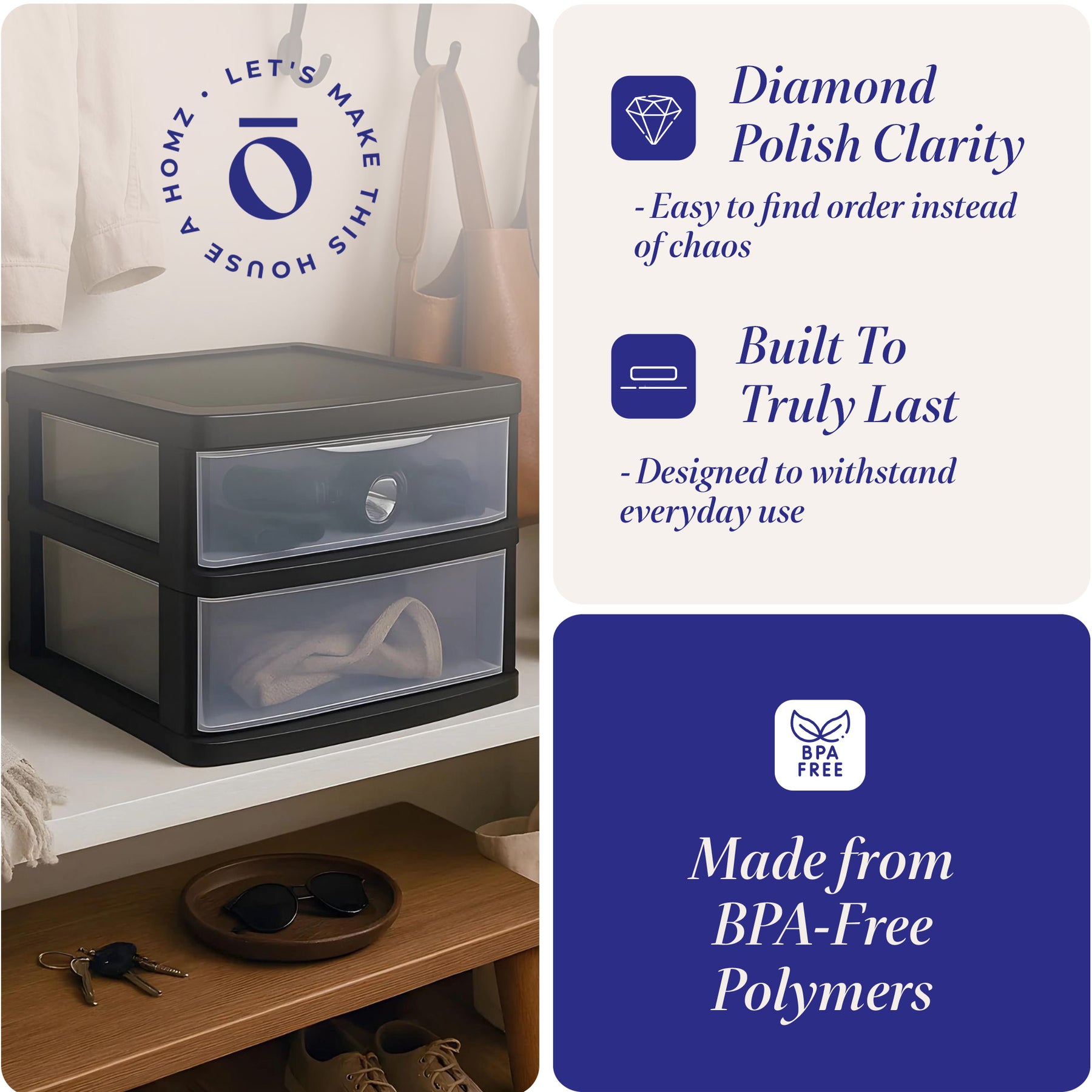 • Color: Black Frame, Clear Drawer