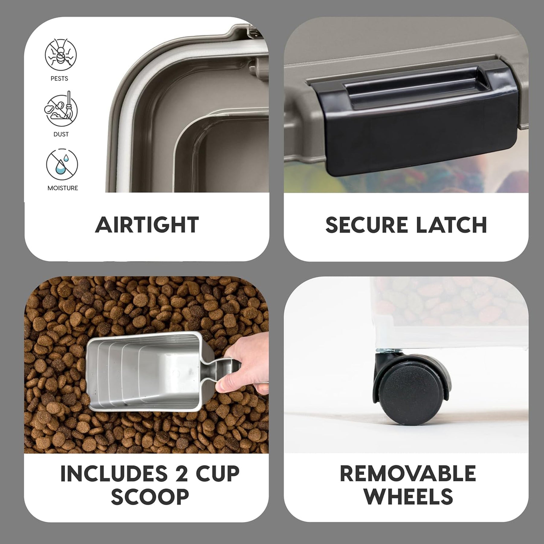 • Ensure your pet's food stays fresh with airtight seals and snap=lock latches, keeping moisture and humidity out