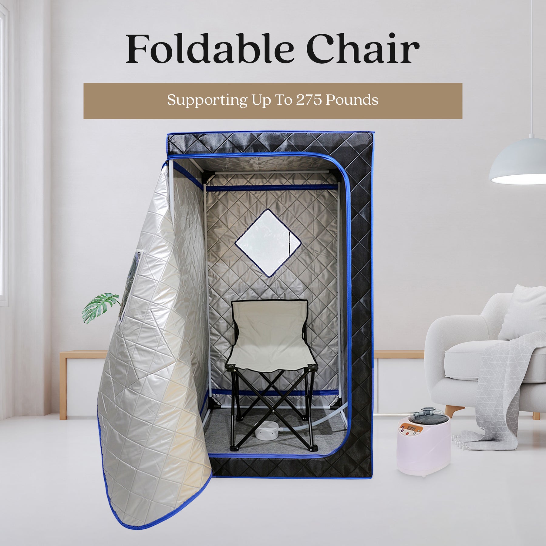 • Secure and comfortable seating with the foldable chair, supporting up to 275 pounds for a relaxing sauna experience for users of various sizes