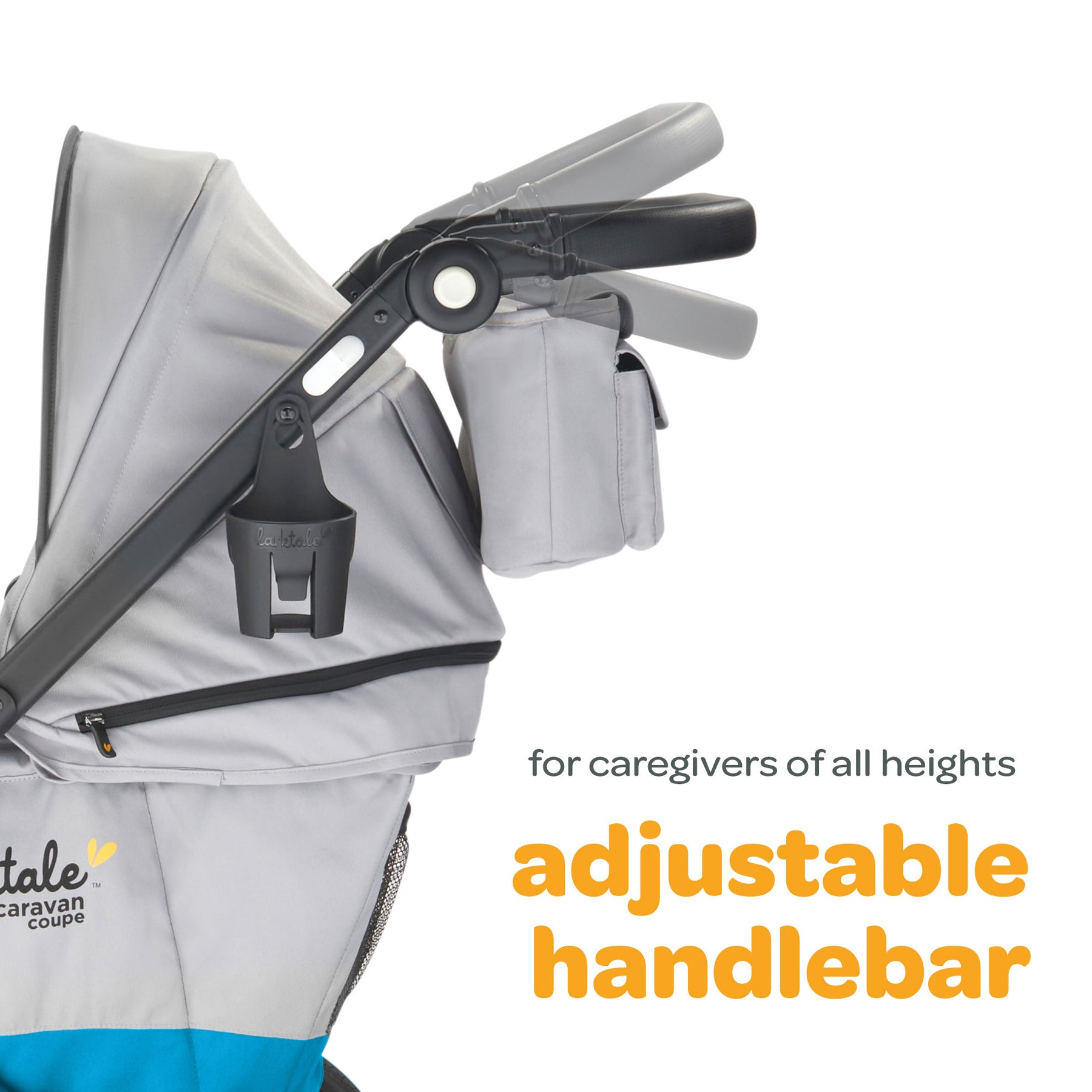 - Leatherette-wrapped handlebar adjusts from 25 to 43 inches to comfortably fit parents of all heights