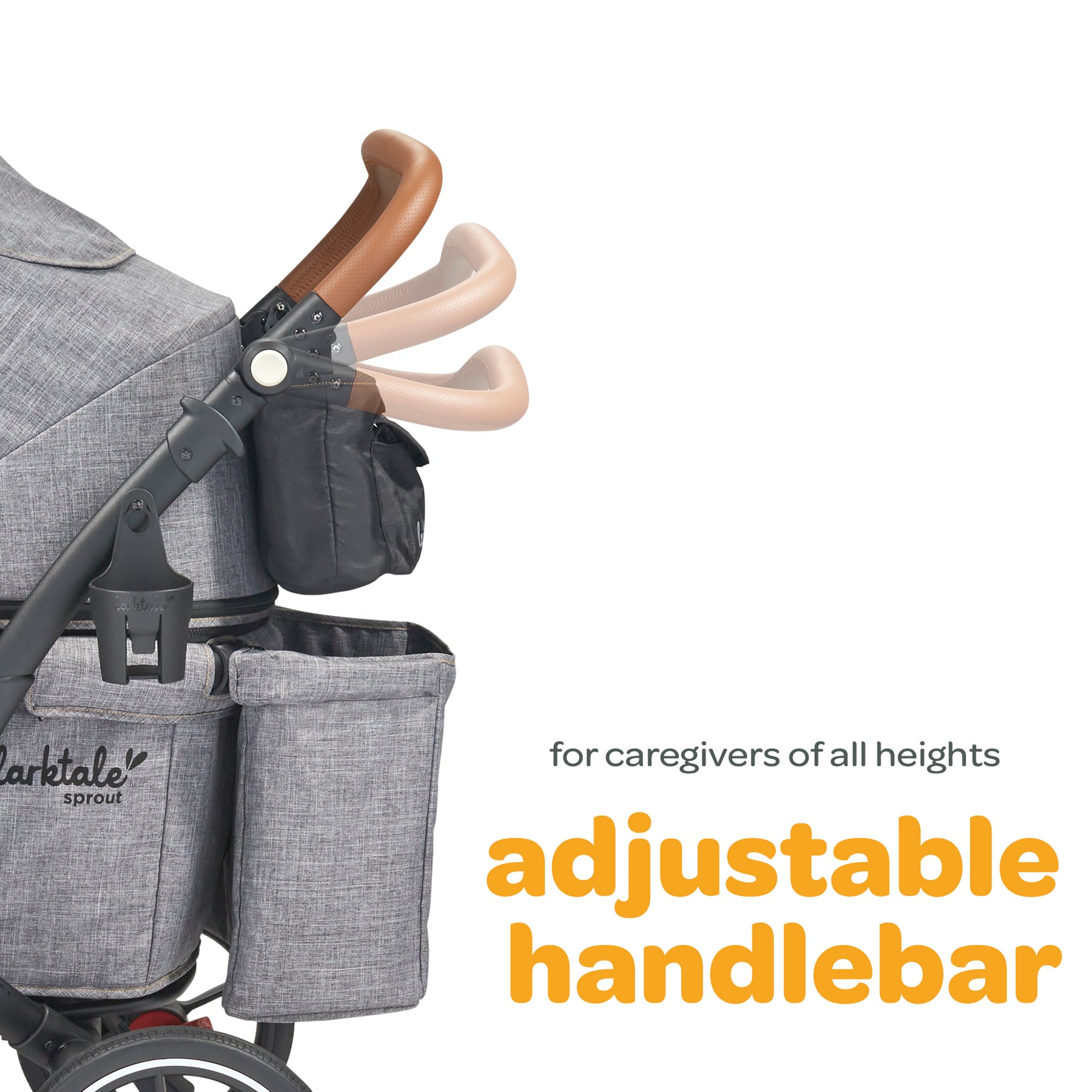 • Adjustable handlebar suits users of varying heights, while the no-rethread harness system simplifies shoulder-height adjustments