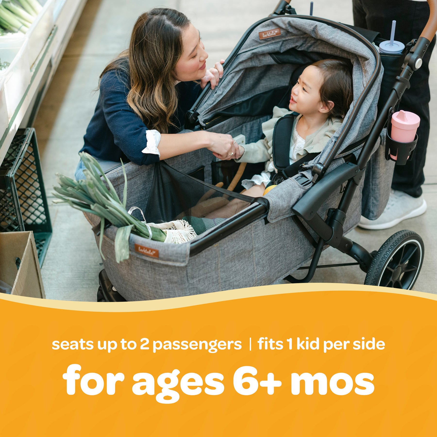 • Expands from a single-seat stroller to a double-seat wagon, accommodating kids from 6 months up to 50 pounds per seat