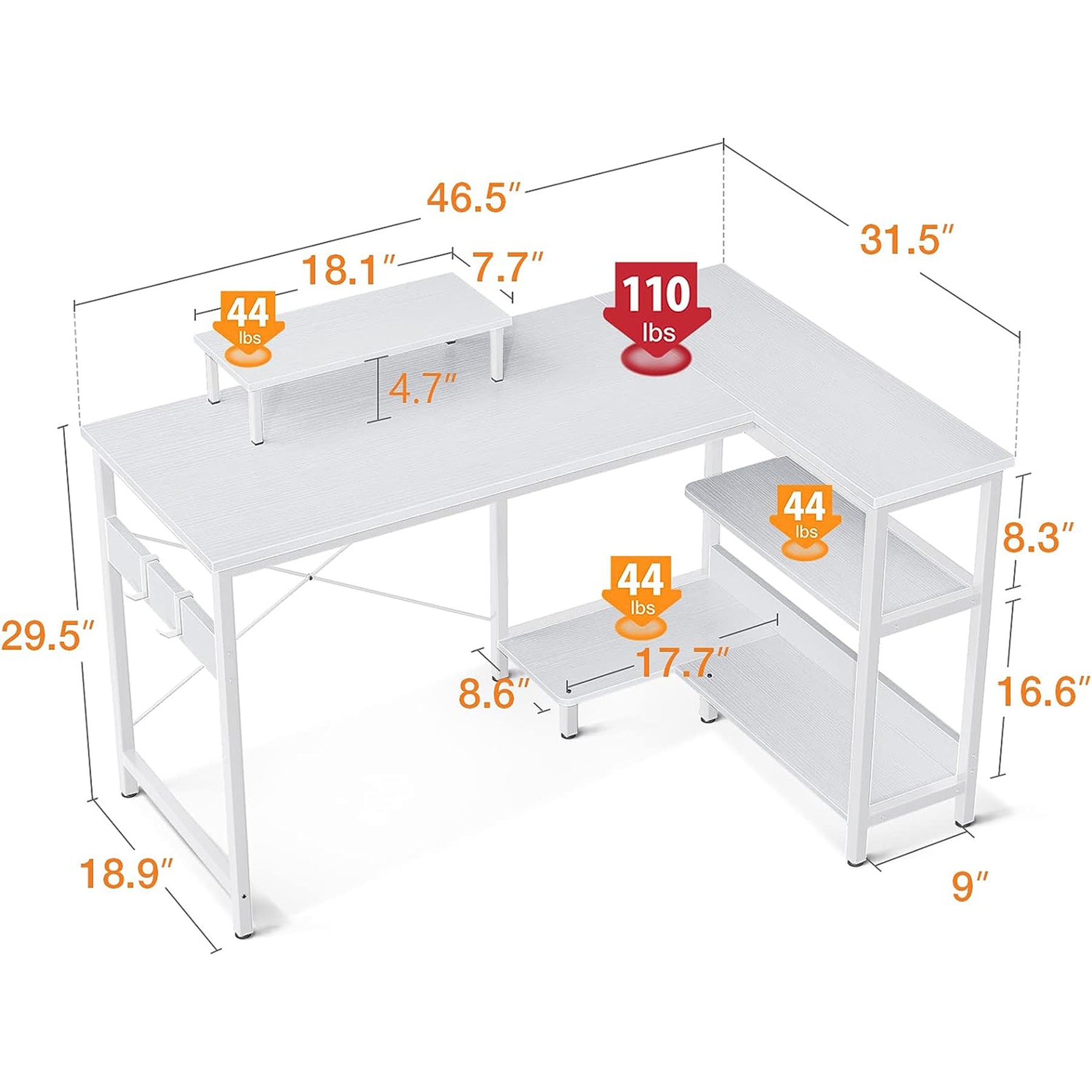 ODK 47 Inch Compact L Shaped Desk w/Storage Shelves & Monitor Stand (For Parts)