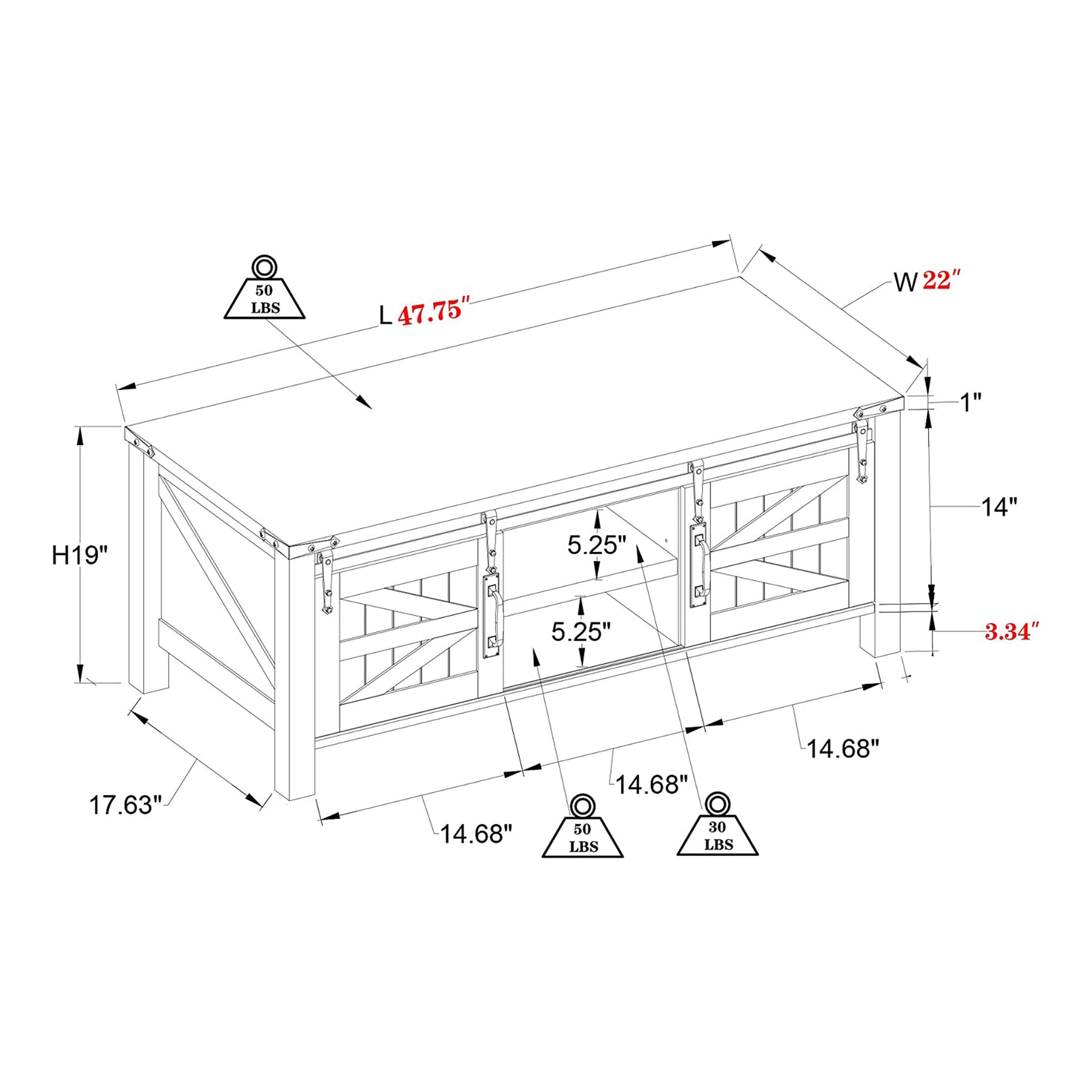 • Dimensions (L x W x H): 48.00 x 21.97 x 18.98 inches