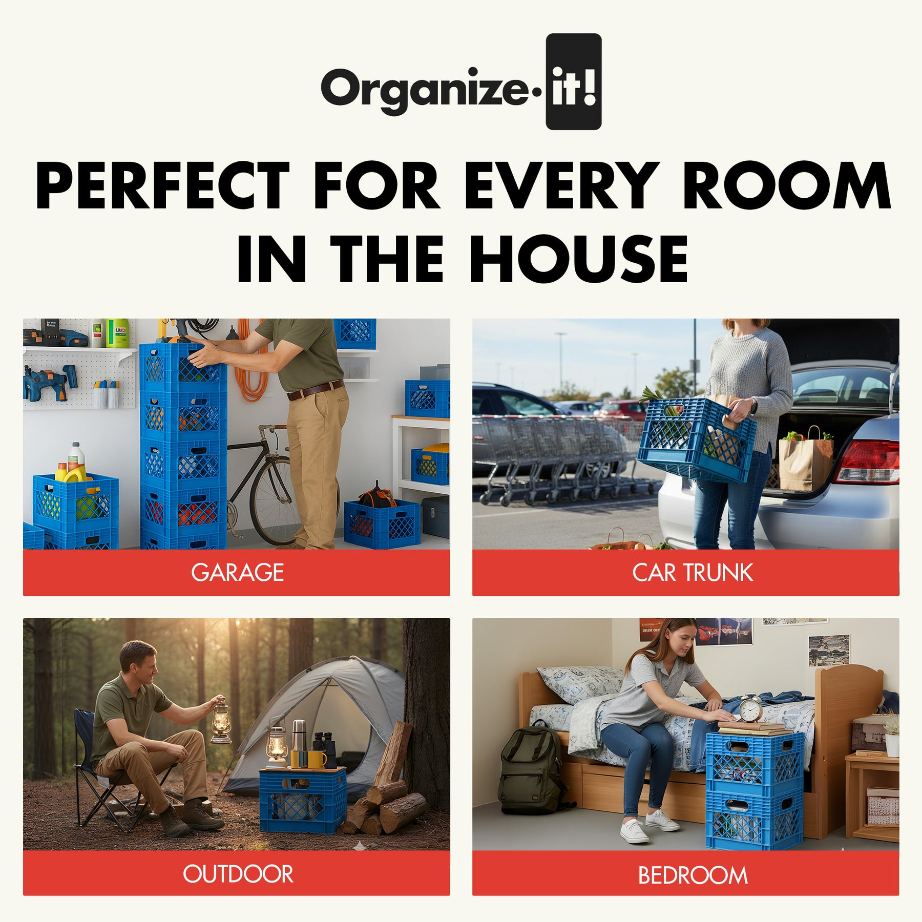 ORGANIZE-IT! Storage Milk Crate, Heavy-Duty Versatile Organizers, 4pk (Open Box)