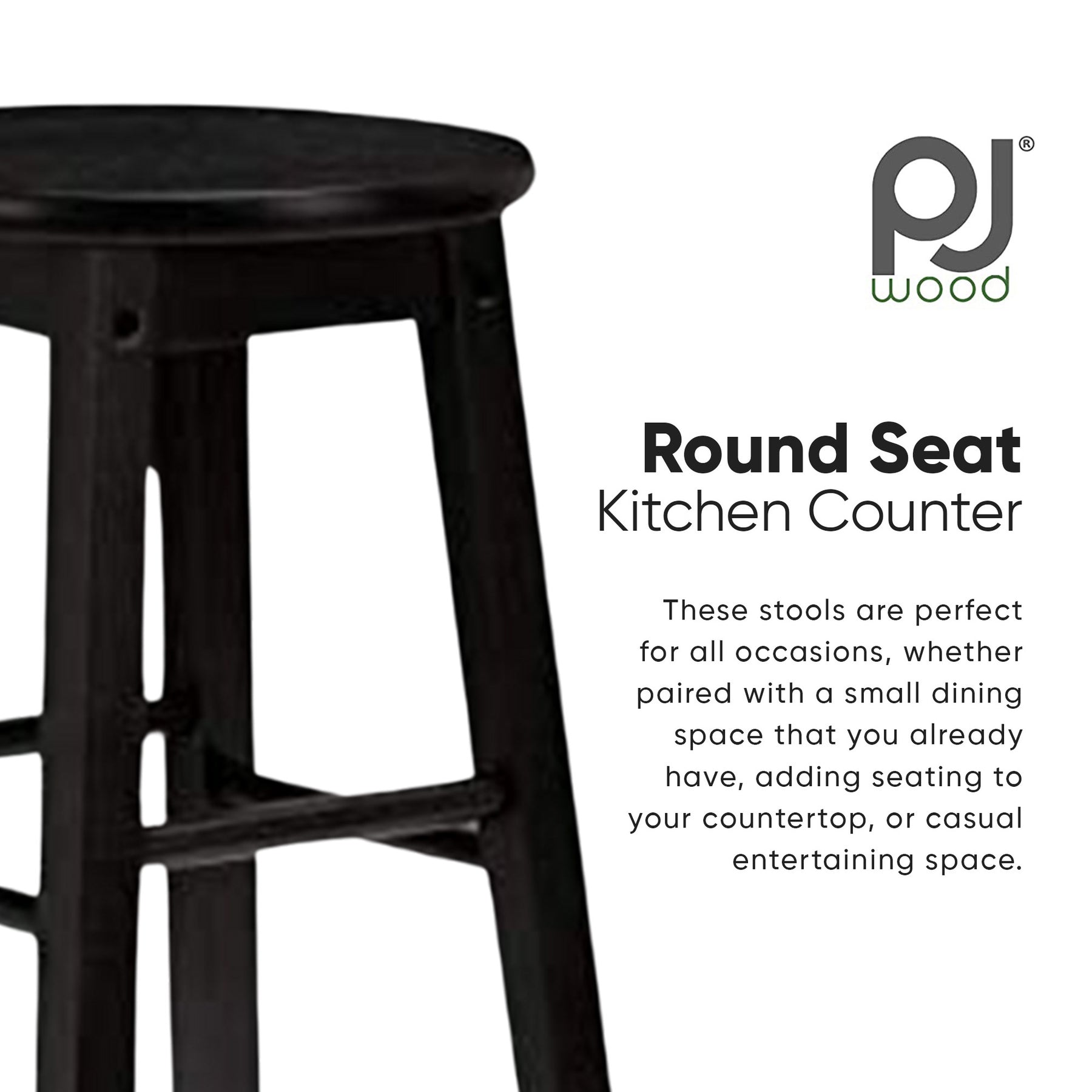 PJ Wood Classic Round-Seat 24 Inch Counter Stools, Black, Set of 2 (Open Box)