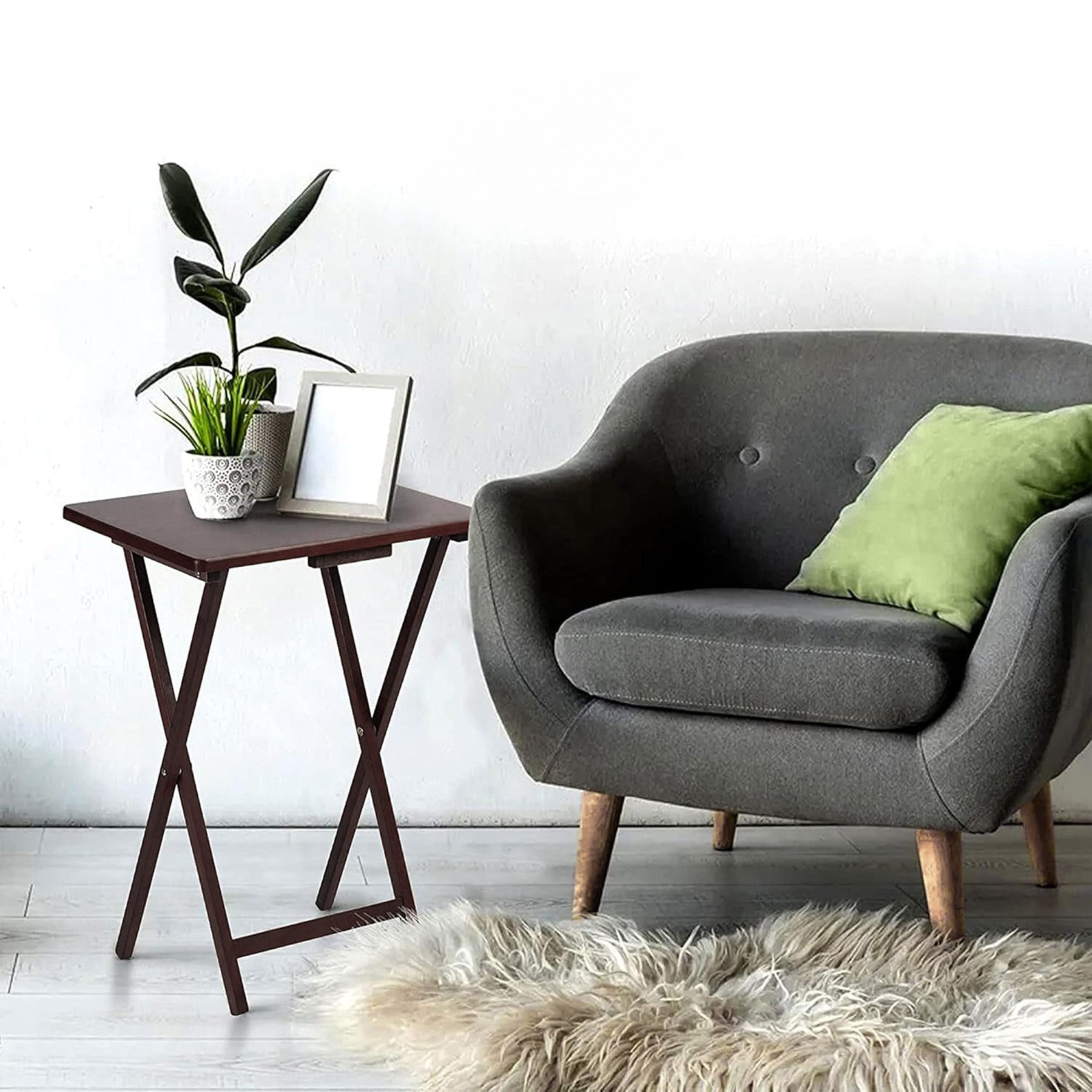 • Watch your favorite show while eating a delicious meal, or enjoy a late-night snack with this 5-piece set of multifunctional folding table trays