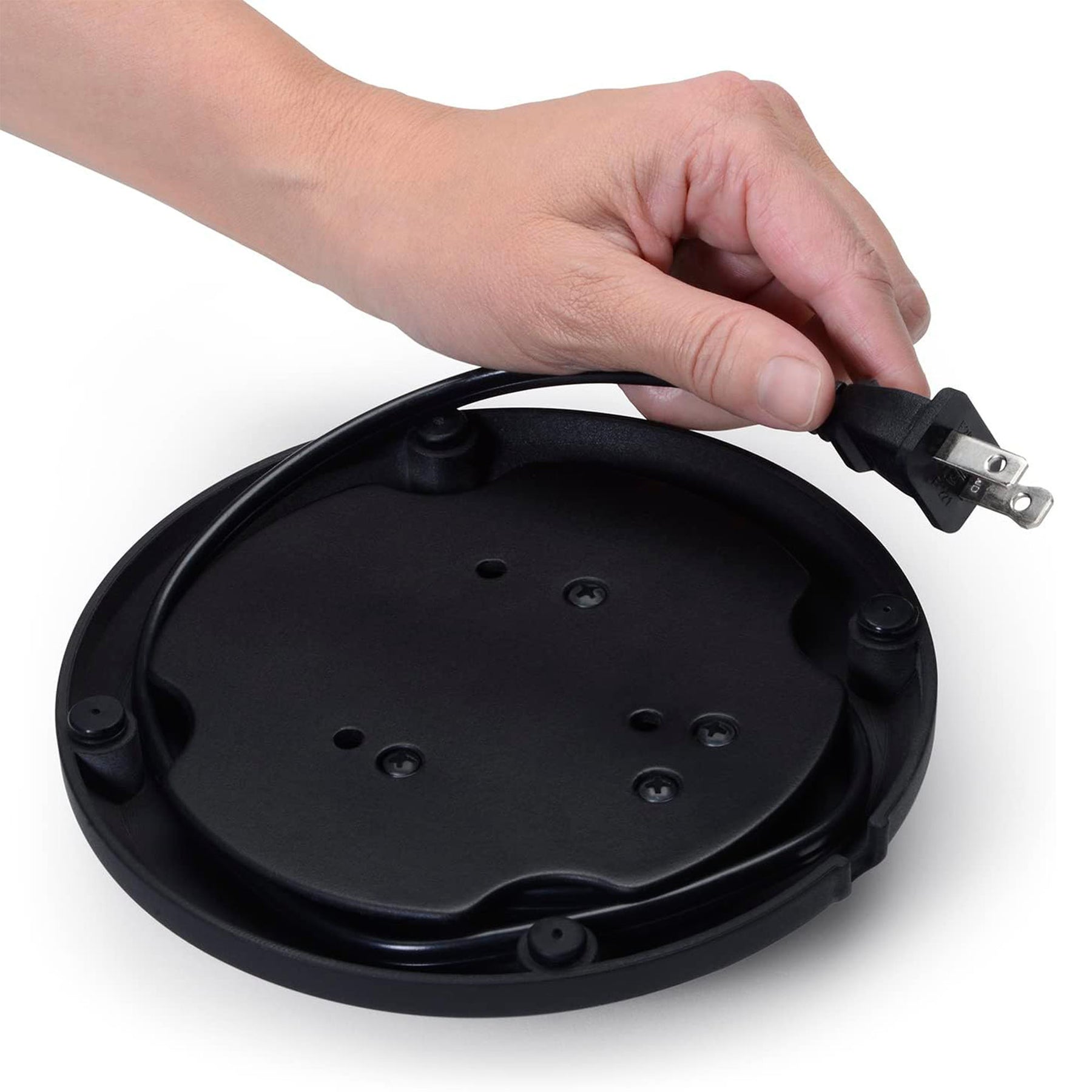 • Cord wraps into base for compact storage