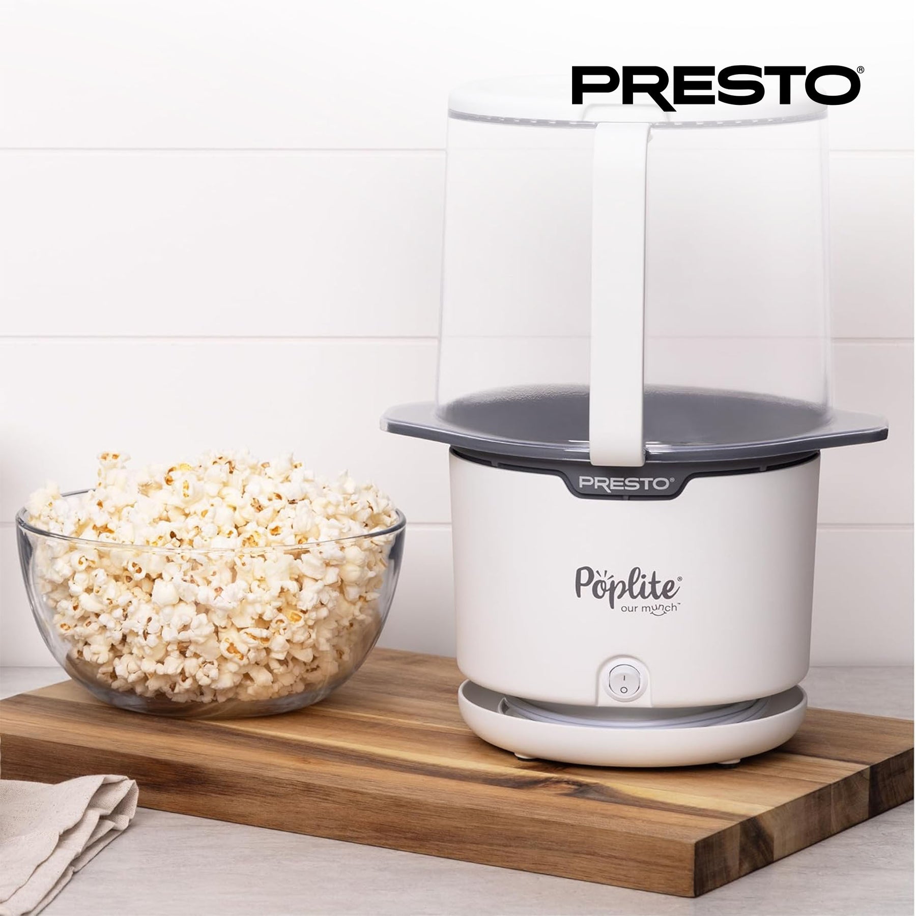 Enjoy fresh, fluffy popcorn anytime with the Presto Poplite Our Munch Hot Air Popcorn Popper, a fast, convenient, and healthier way to make your favorite snack at home. Designed to pop corn using hot air instead of oil, this popcorn popper delivers a delicious low-fat treat without sacrificing taste or texture. In just minutes, it can produce up to 15 cups of regular or gourmet popcorn, making it perfect for movie nights, family gatherings, or everyday snacking.