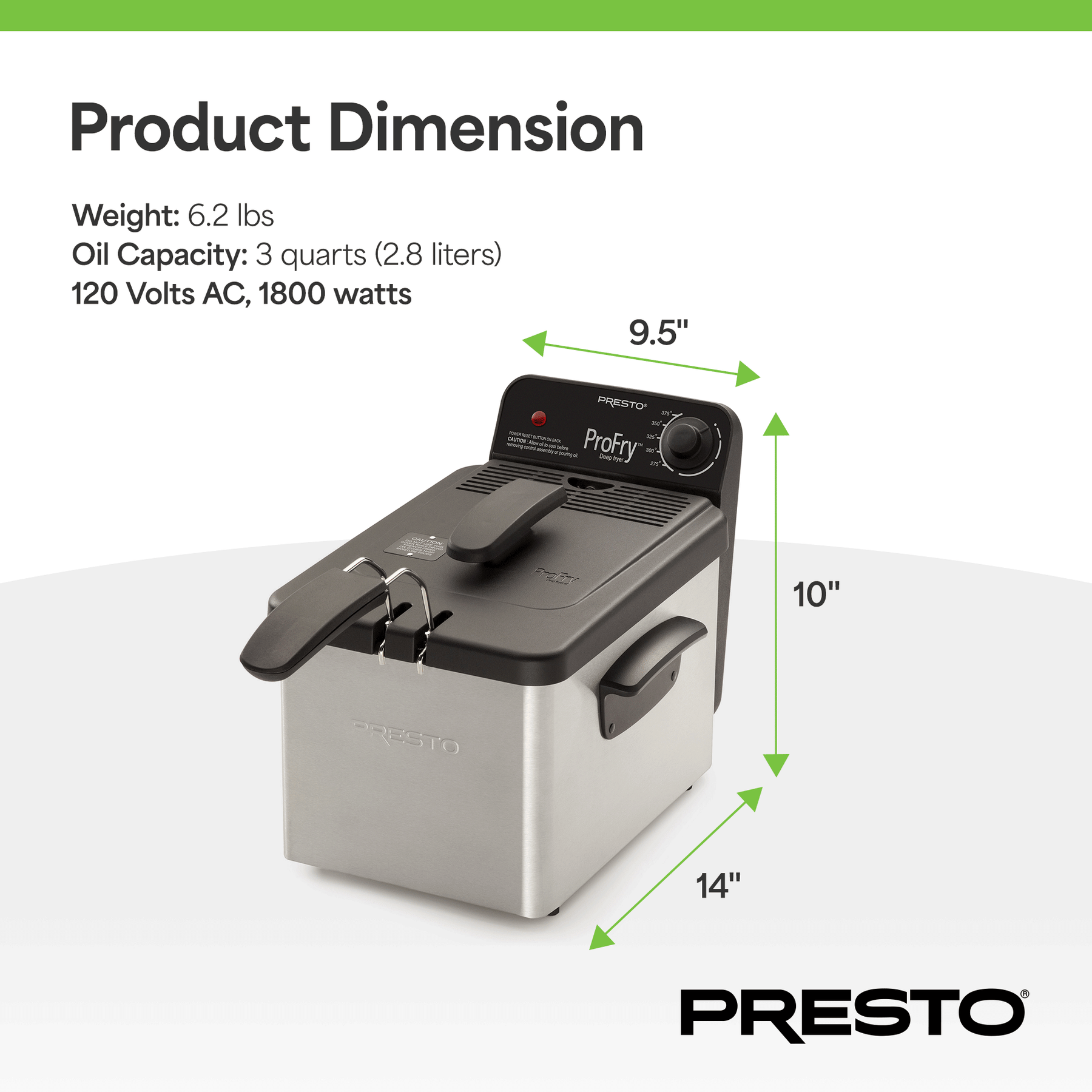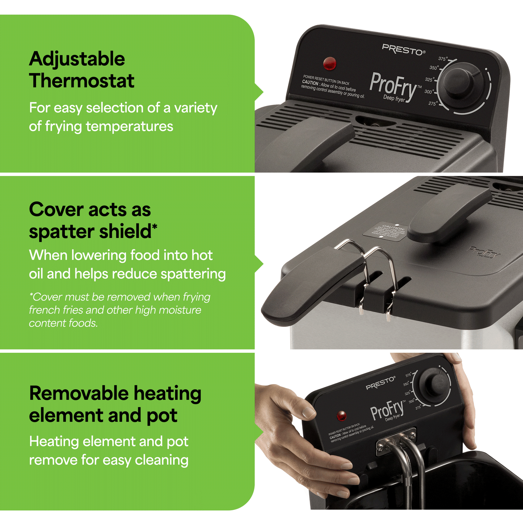• Dial in the perfect frying temperature from 275°F to 375°F for a wide range of recipes.