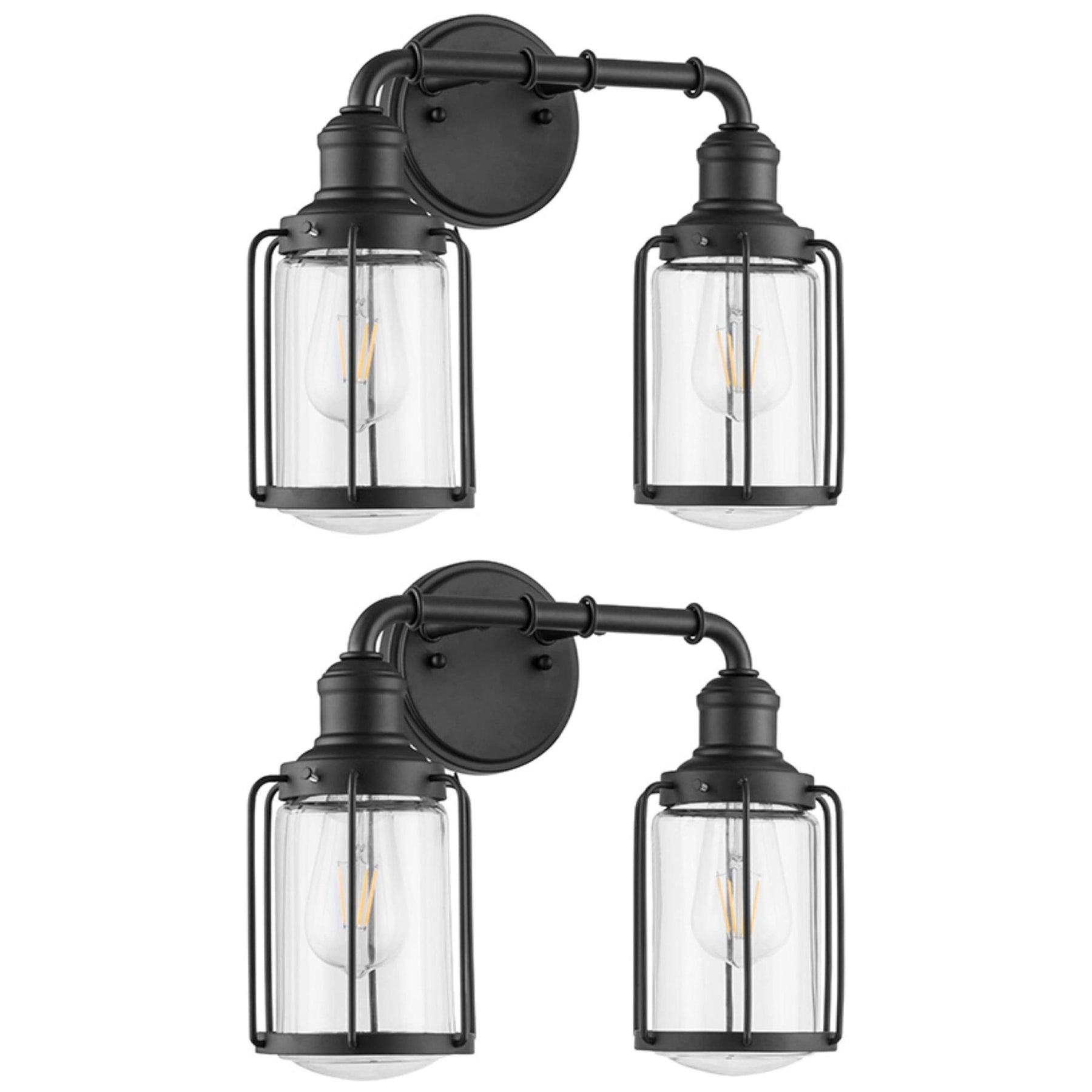 Prominence Home 2 Pack Lincoln Woods 2 Light Industrial Bath Vanity Light, Black
