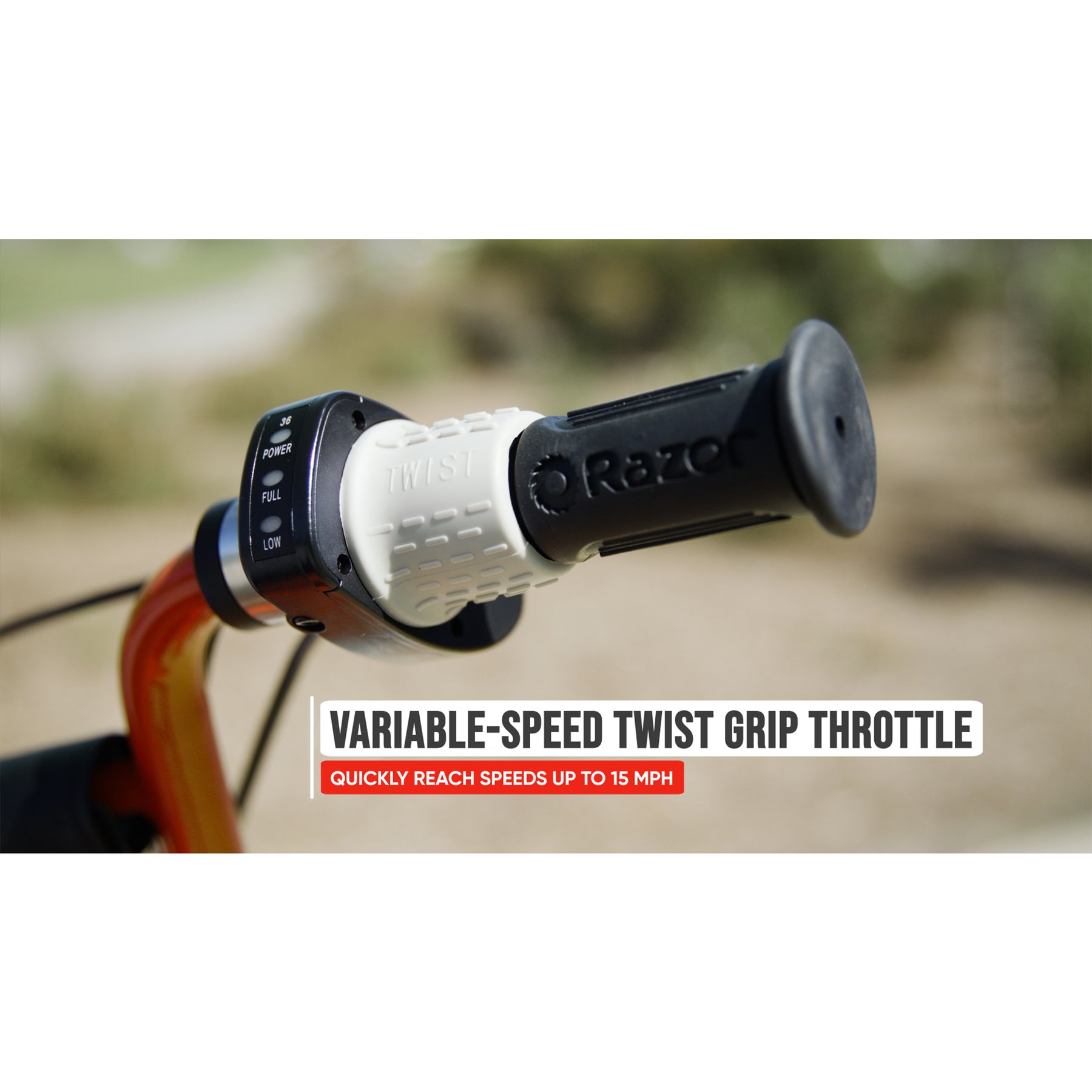 • At speeds up to 15mph (24 km/h), the Razor MX500 leaves similar bikes in its dust