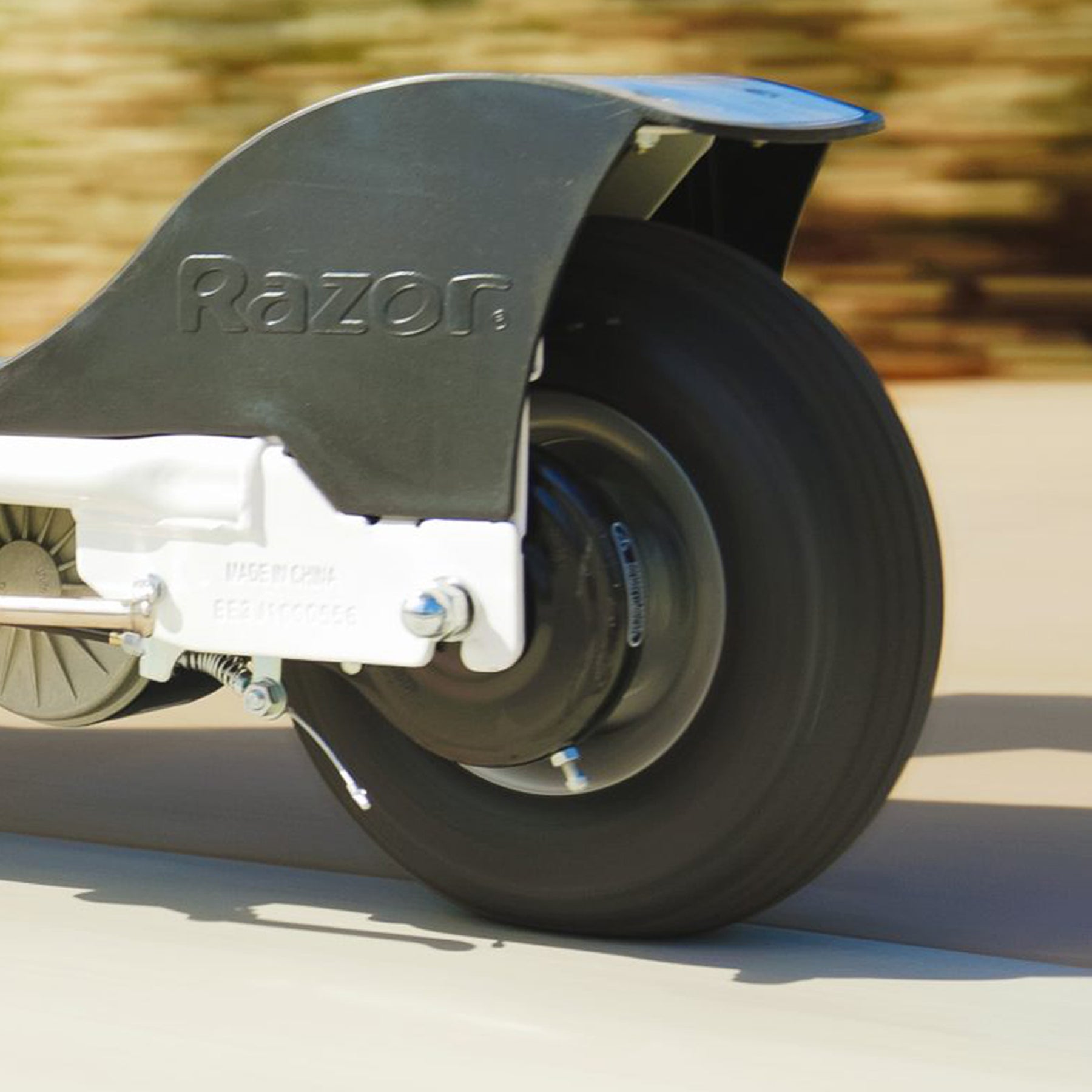 Razor Seated Electric Scooter for Kids, Pneumatic Tires, Seat, White/Blue (Used)