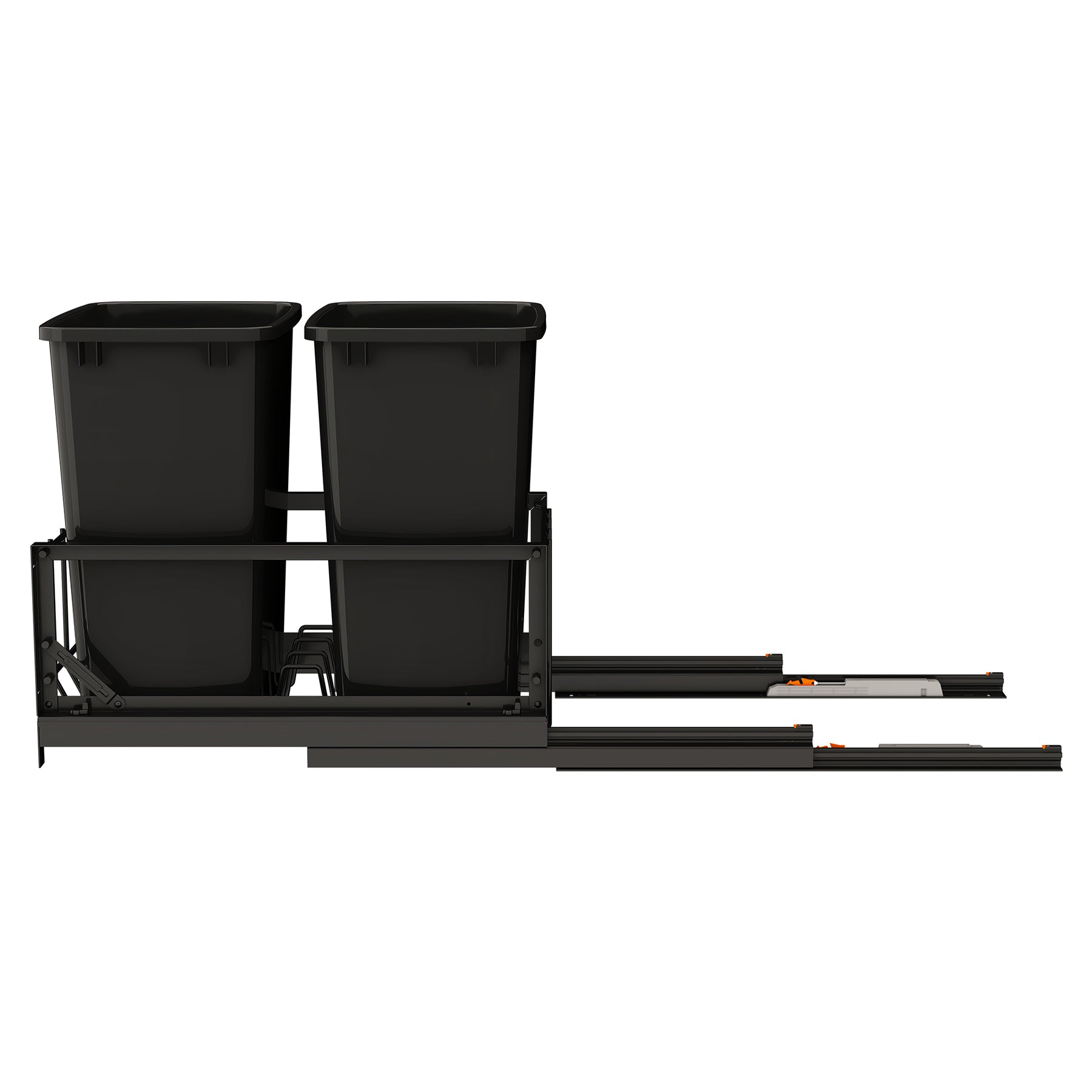 - Aluminum Pullout Double Waste Container with Soft-Close to keep kitchen trash and recycling discreetly hidden yet easily accessible