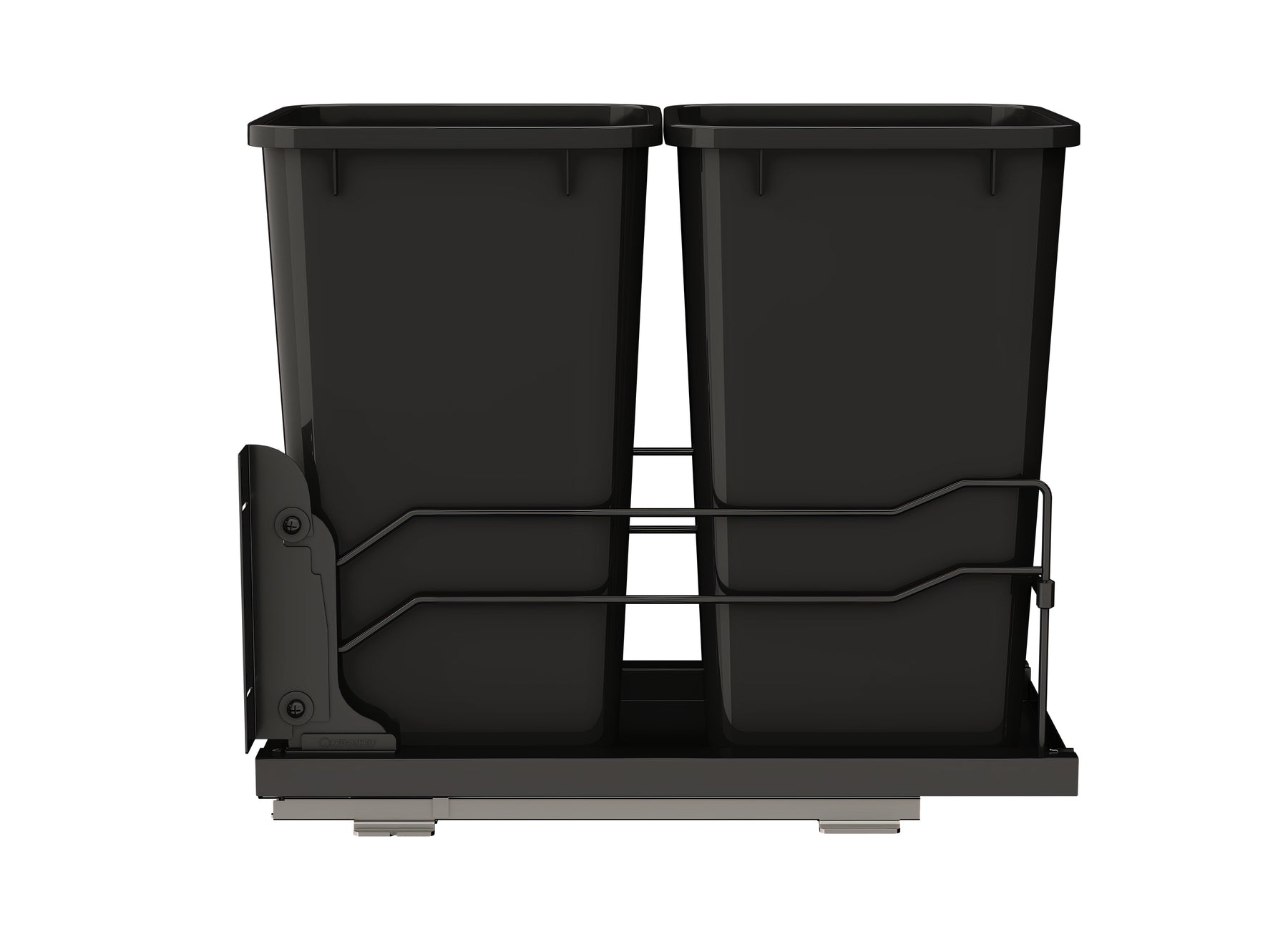• Includes (2) 27 qt. waste containers, (1) metal frame, (1) pair of slides, mounting hardware, and door mount brackets