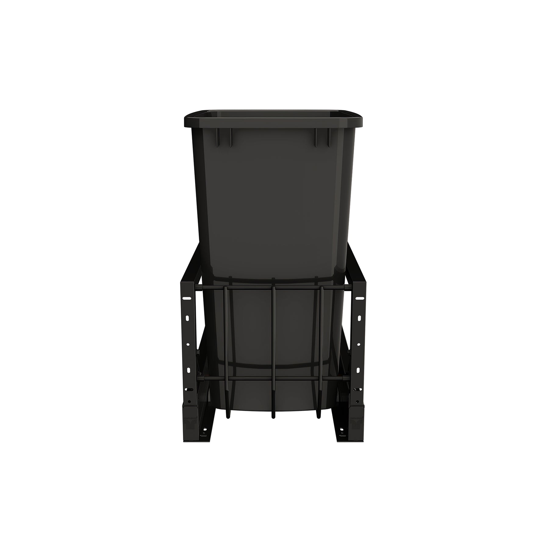- Aluminum Pullout Single Waste Container with Soft-Close to keep kitchen trash and recycling discreetly hidden yet easily accessible