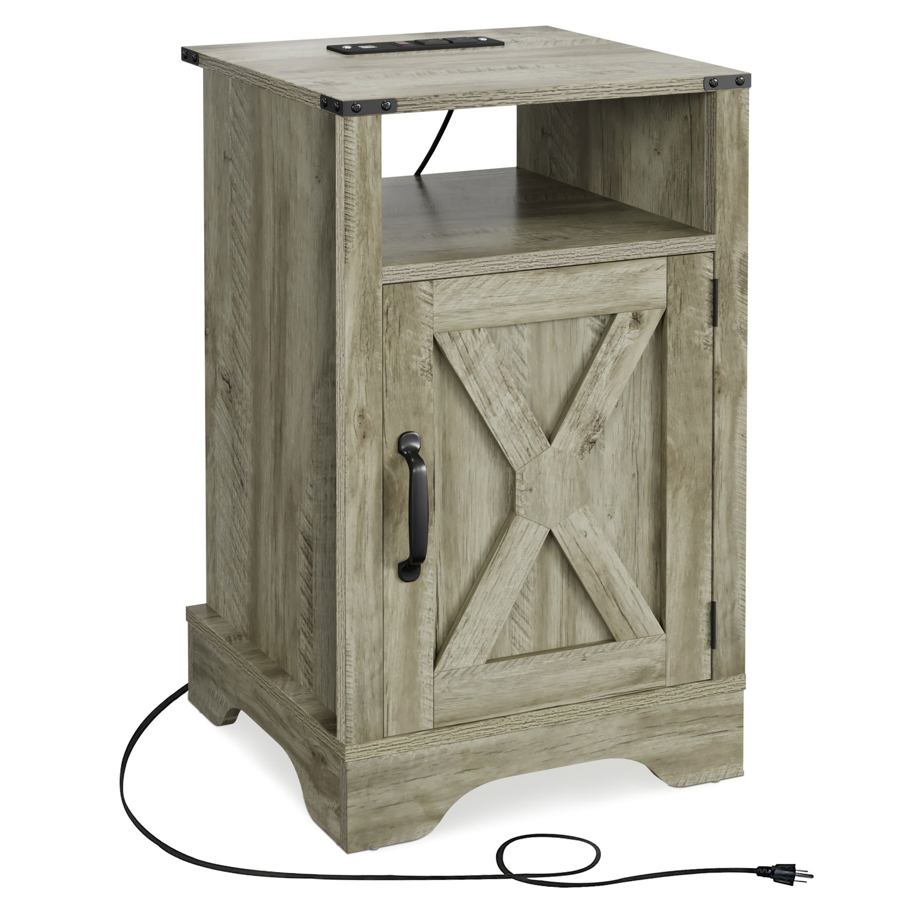 RoyalCraft Nightstand, Bedroom Table w/Charging Station, Light Grey (Open Box)