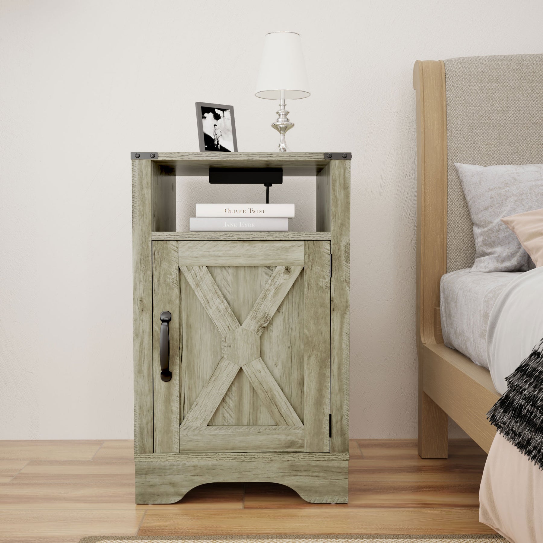 • Farmhouse nightstand crafted from durable MDF and engineered wood for lasting use in bedrooms, entryways, or living rooms