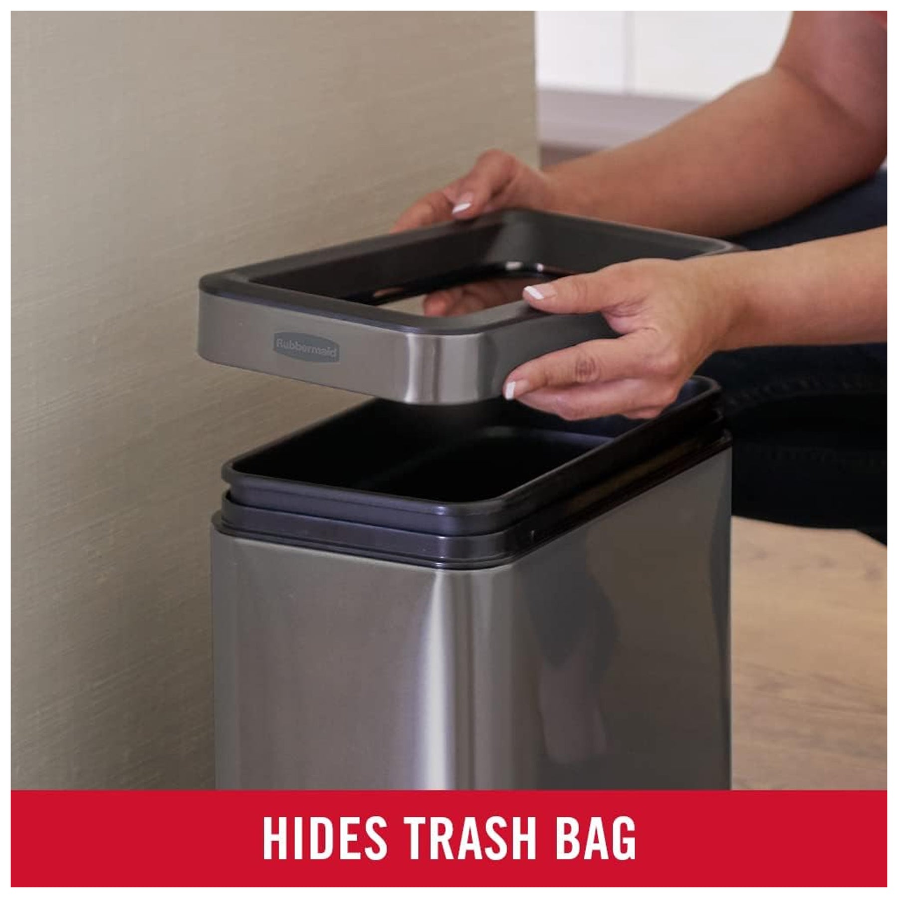 • Removable inner liner simplifies cleaning and keeps standard trash bags neatly contained