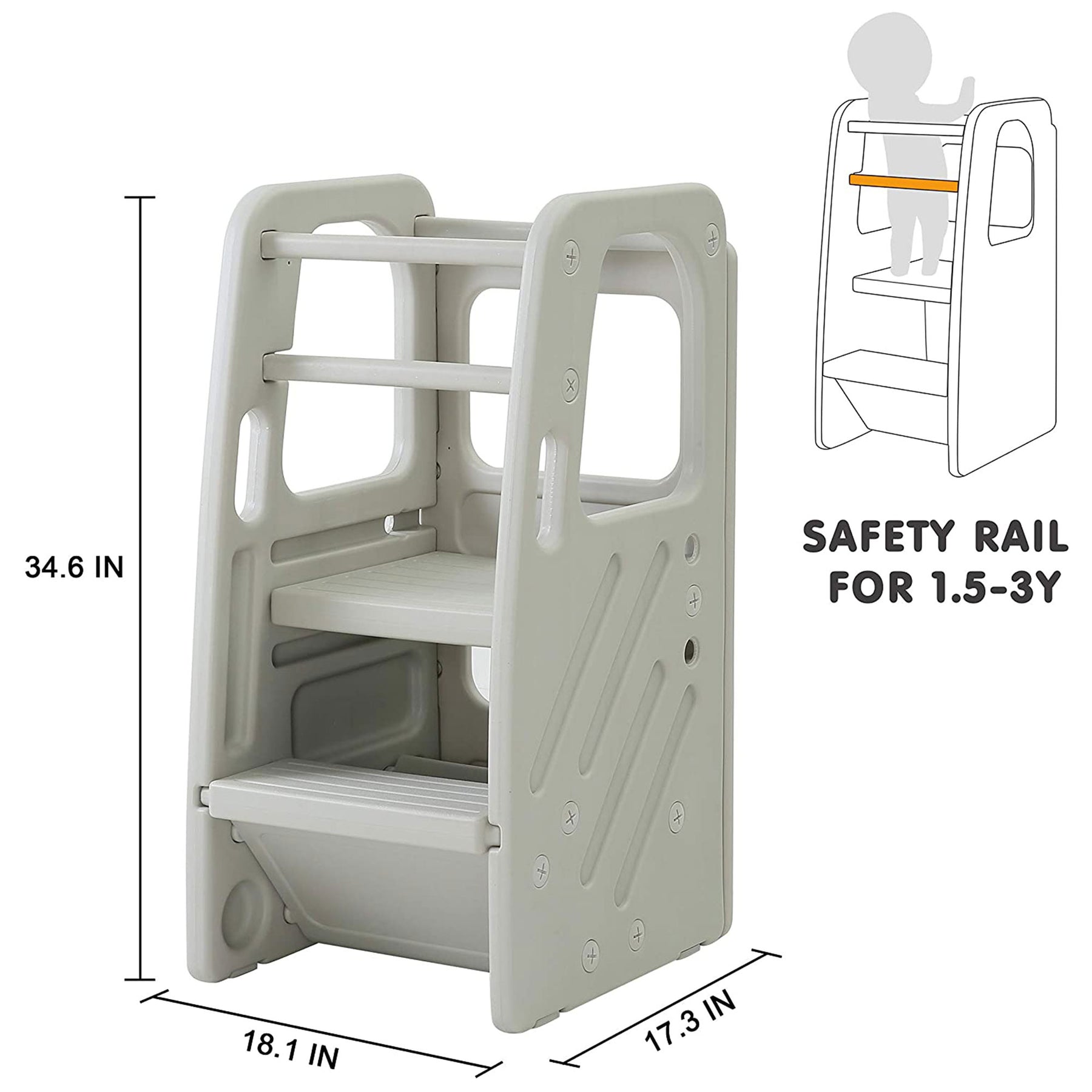 • Designed with safety in mind, high sides surround the child and aid balance while washing hands, brushing teeth, or tackling chores