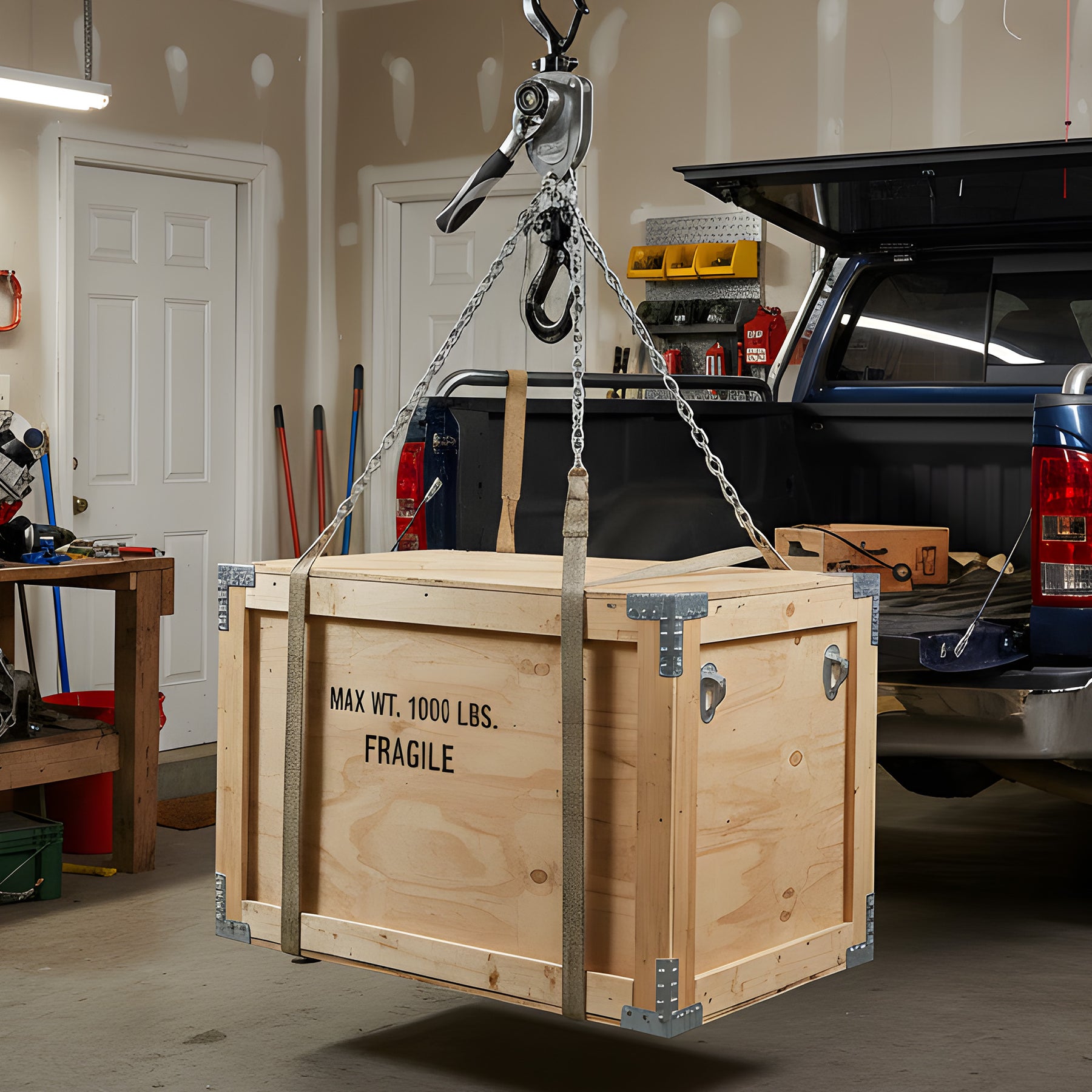 - Heavy-duty 1/2-ton (1,000 pounds) capacity hoist delivers powerful manual lifting for shops, garages, or job sites