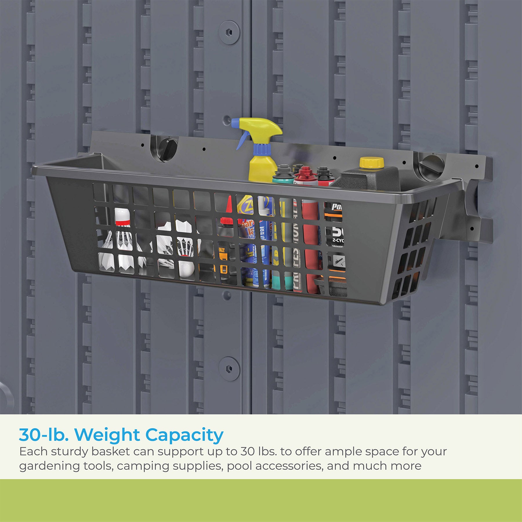• Set of 4 convenient shelf baskets allows you to add even more storage to your shed