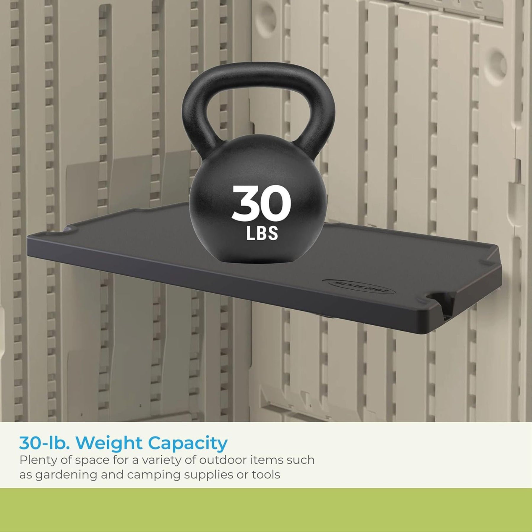 Crafted from long-lasting resin, the shelves are built to withstand regular use and maintain structure through changing seasons. Their sleek finish pairs seamlessly with your shed interior, while the simple setup makes it an effortless addition to your storage system. The compact design optimizes every inch, making it an ideal upgrade for small or crowded sheds.