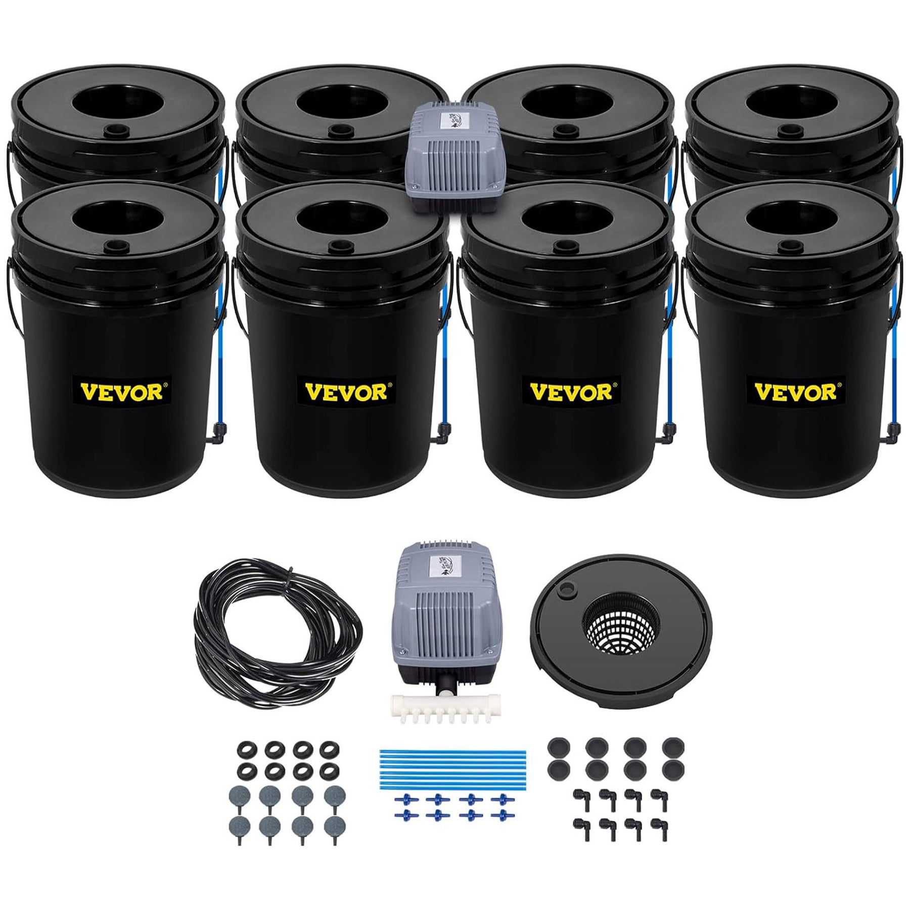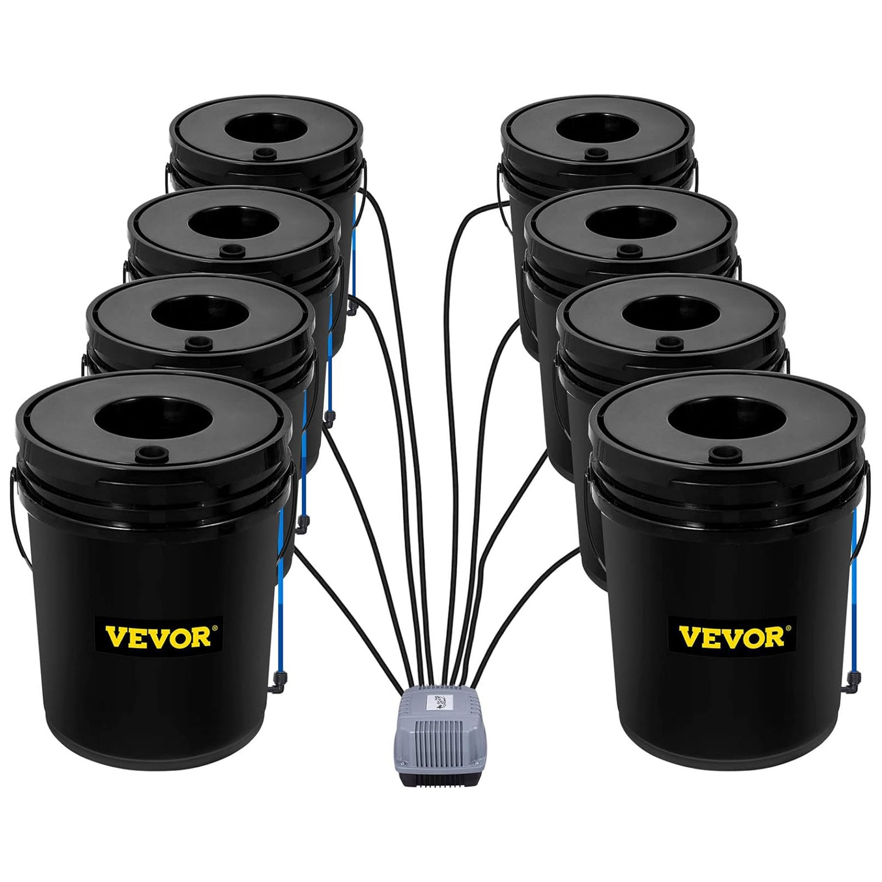 • Features 8 durable PP buckets with 5-inch baskets and a 5-gallon capacity, ideal for growing multiple plants simultaneously